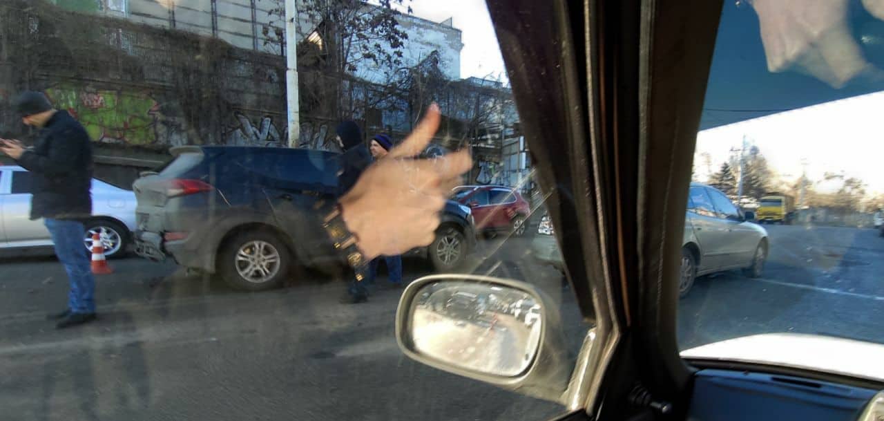 За попередньою інформацією на вулиці Сергія Серікова зіштовхнулися два транспортних засобів. В результаті зіткнення, частини з автівок валяються на асфальті.