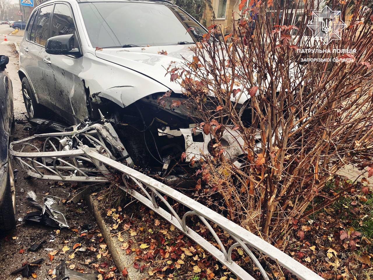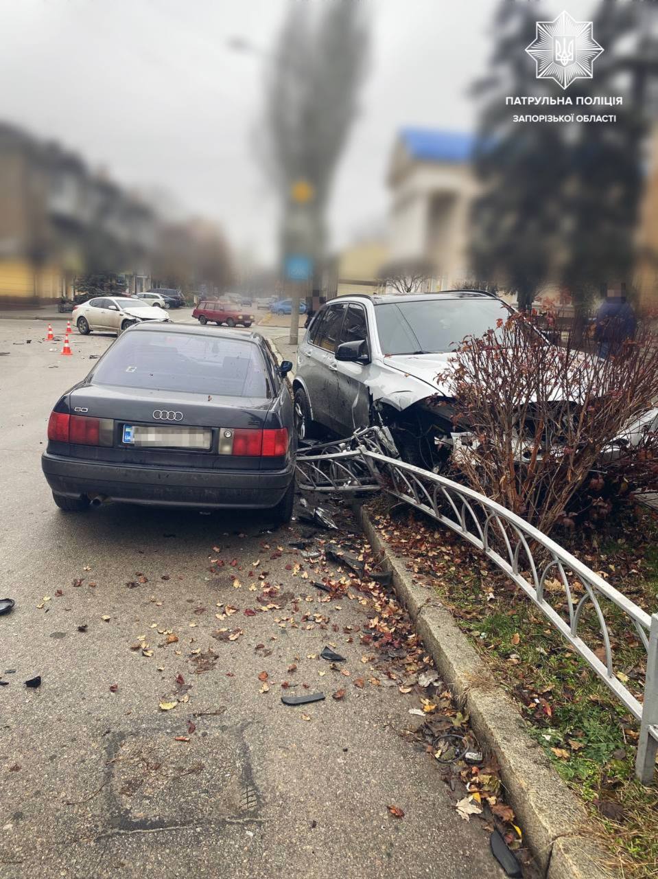 BMW продовжив неконтрольований рух та здійснив наїзд на припаркований автомобіль AUDI 80 та пошкодив огороджувальний паркан.