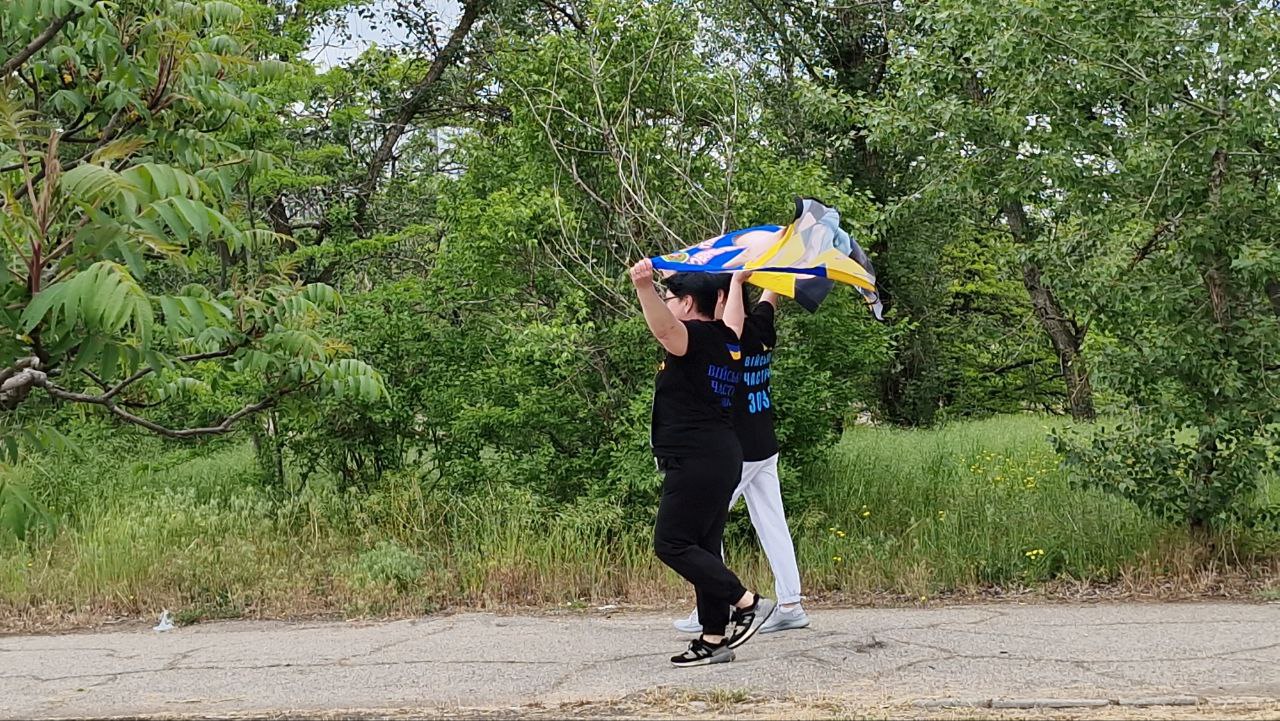 Доєдналась до акції запорізька журналістка Ольга Звонарьова, яка бігла за полоненого чоловіка вчительки своєї дитини, який знаходиться у полоні з початку повномасштабного вторгнення.
