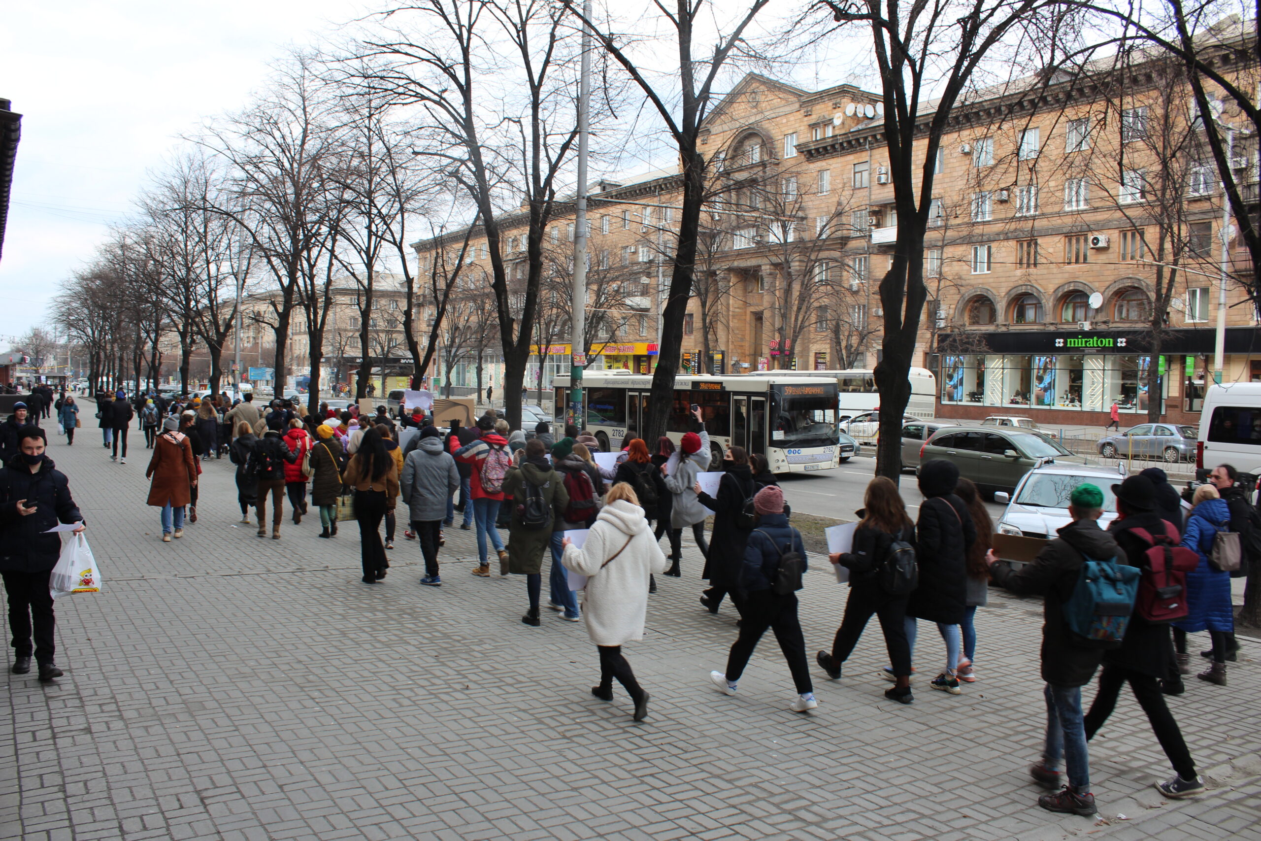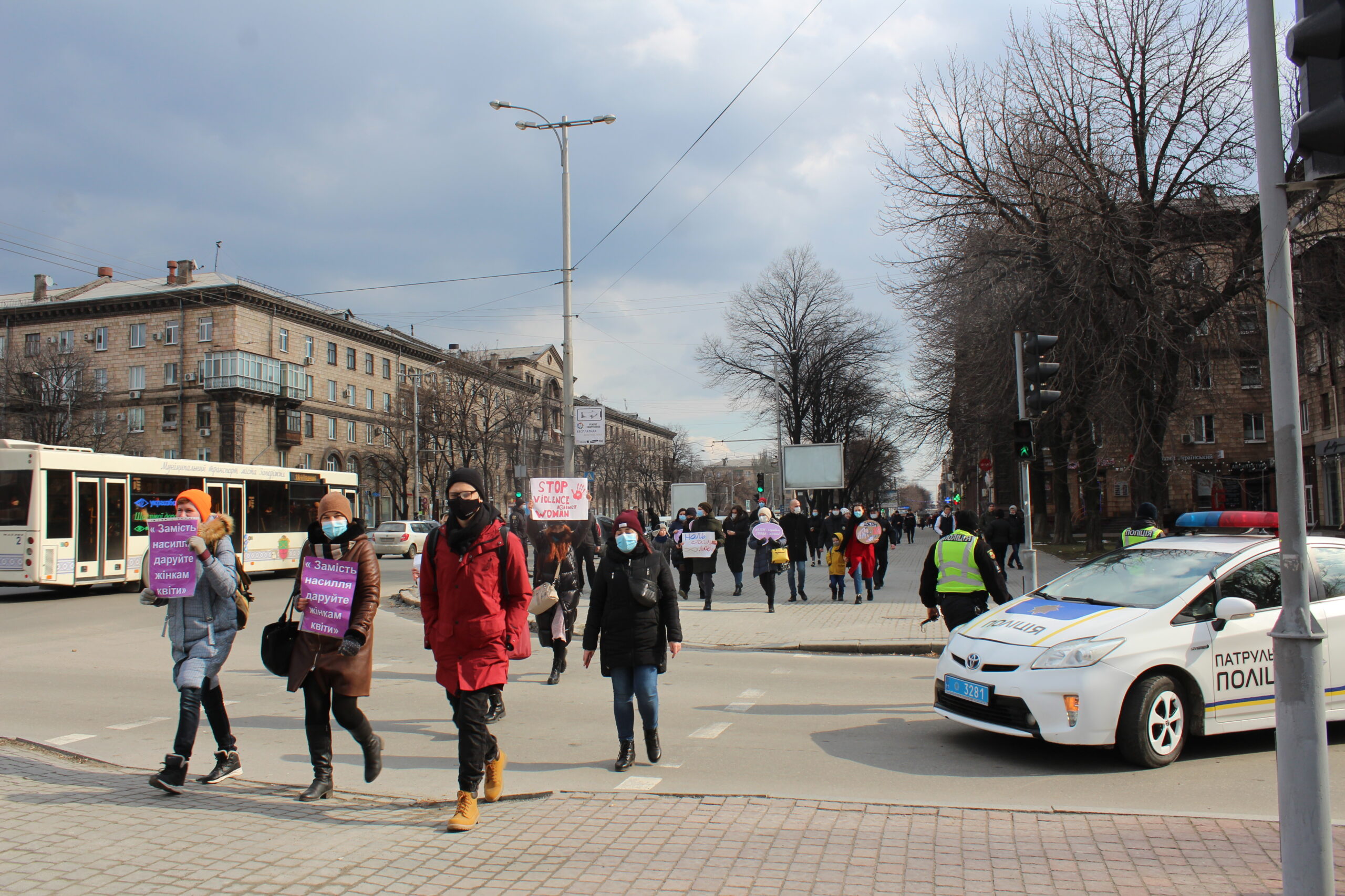О 13:00 колона рушила проспектом Соборним, в бік бульвару Шевченка. Весь час учасників супроводжували поліцейські, на перехрестях доріг вони забезпечували безпечний рух активістів та слідкували за порядком.
