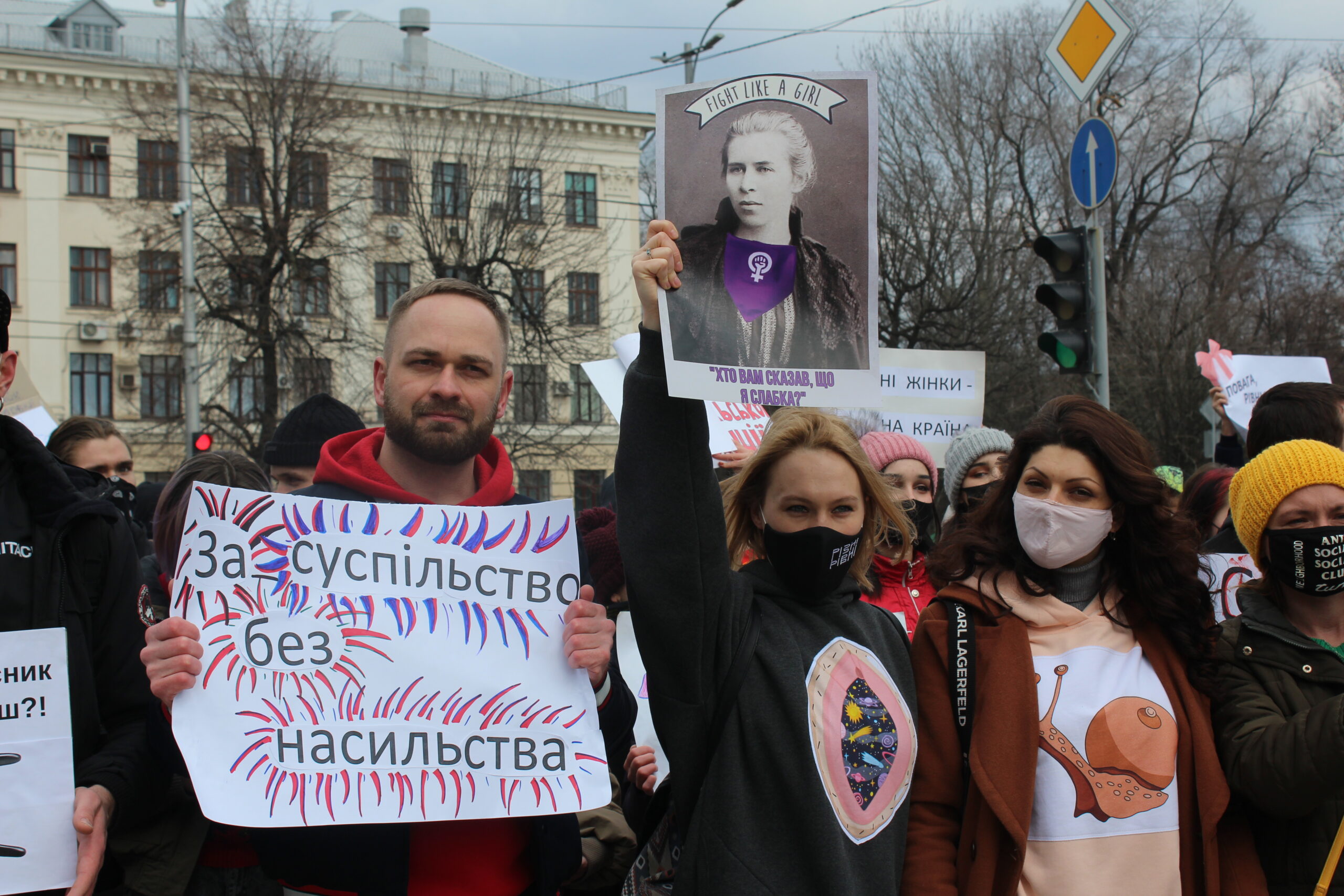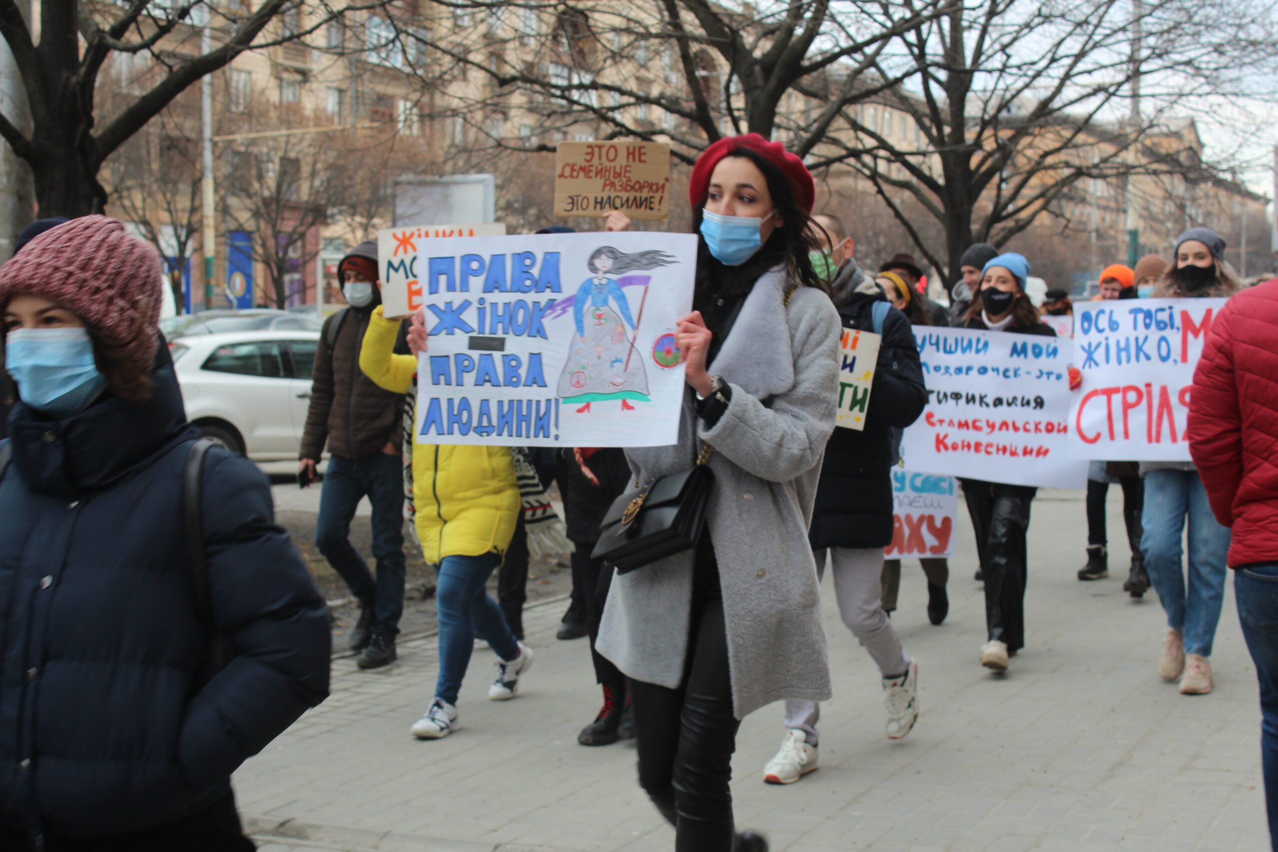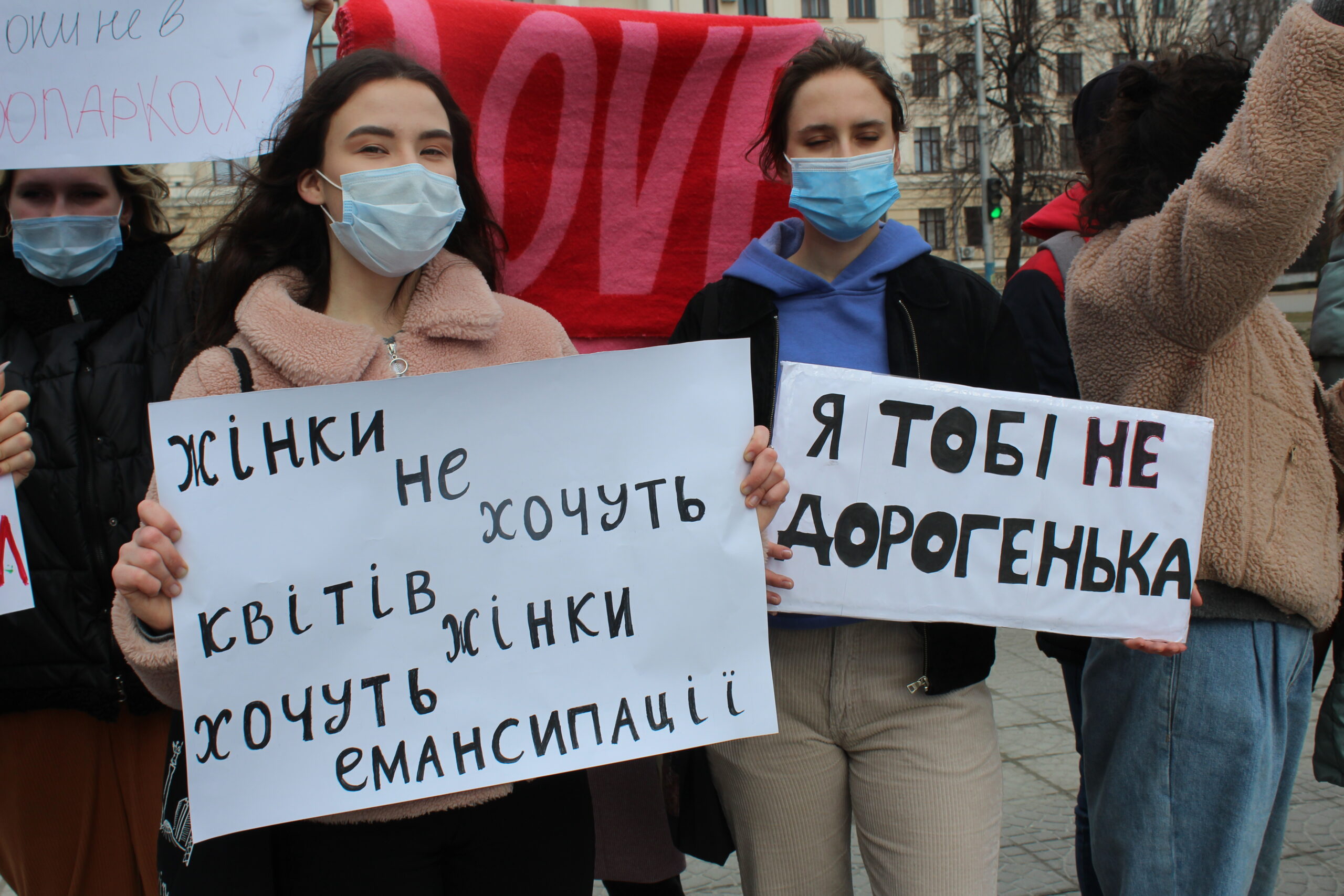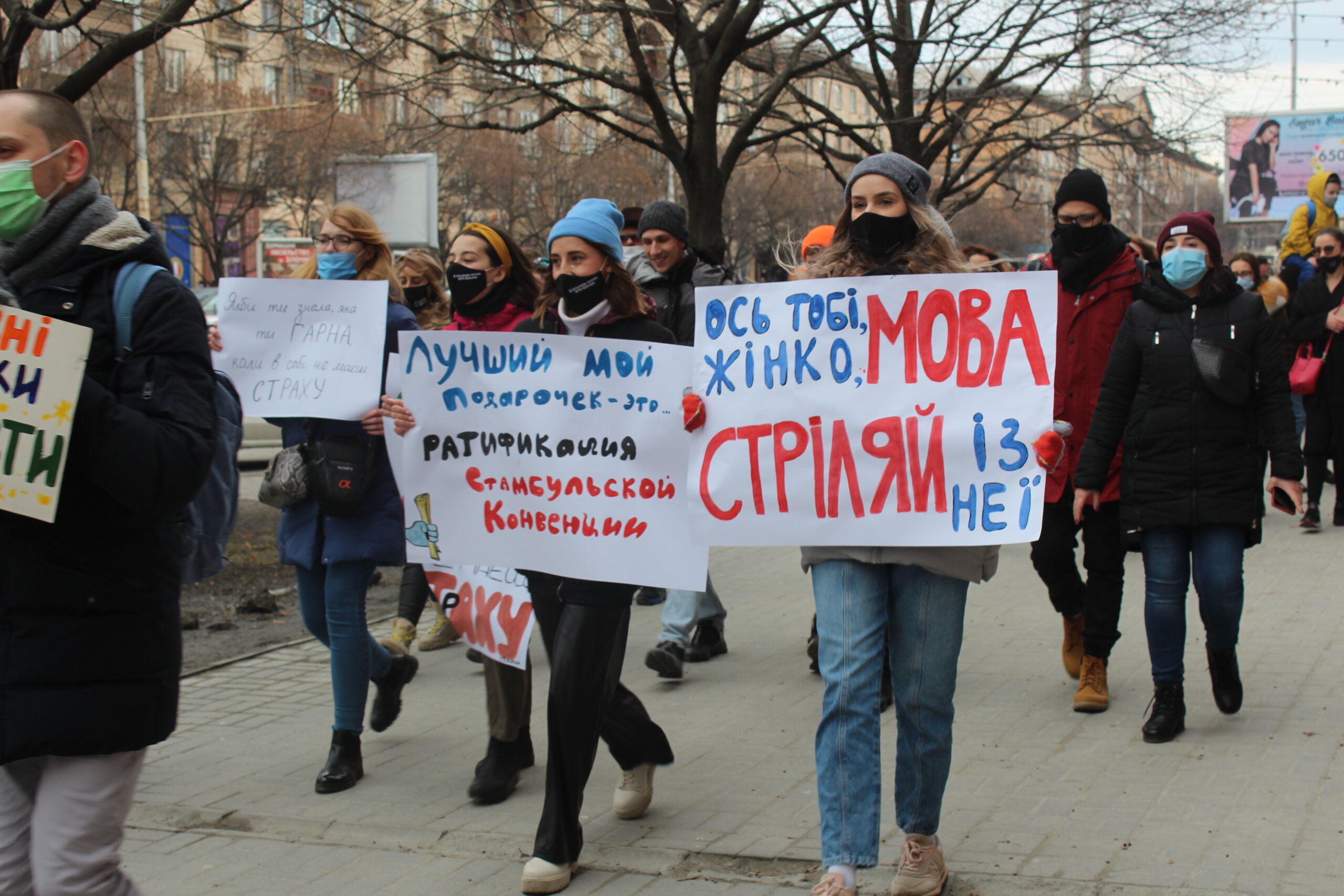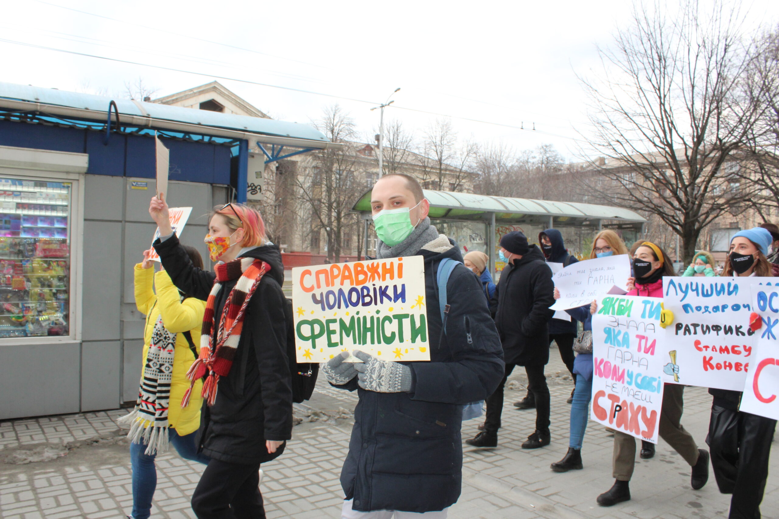 Весь час колона скандувала «Квіти клумбам — жінкам права», «Ратифікація Стамбульської конвенції», «Готуй, кохай, права не віддавай». Взагалі, левова частина присутніх — це молодь, на відміну від Маршів минулих років. Увагу привертали і діти, деякі учасники приїхали цілими родинами.