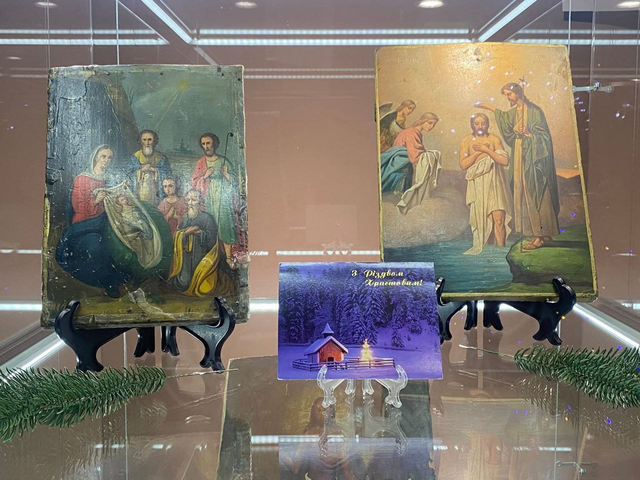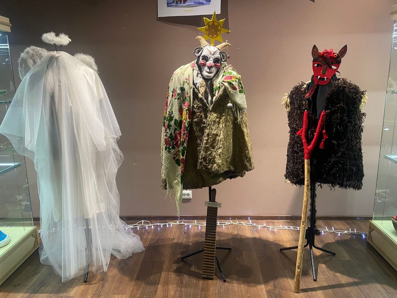 Також організатори приділили увагу традиційним персонажам українського вертепу — Ангелу, Чорту та Козі. Вони символізують давні обрядові традиції, без яких важко уявити Новорічні свята. Доповнюють експозицію тематичні фотографії та святкові листівки, що підсилюють відчуття родинного тепла і ностальгії.