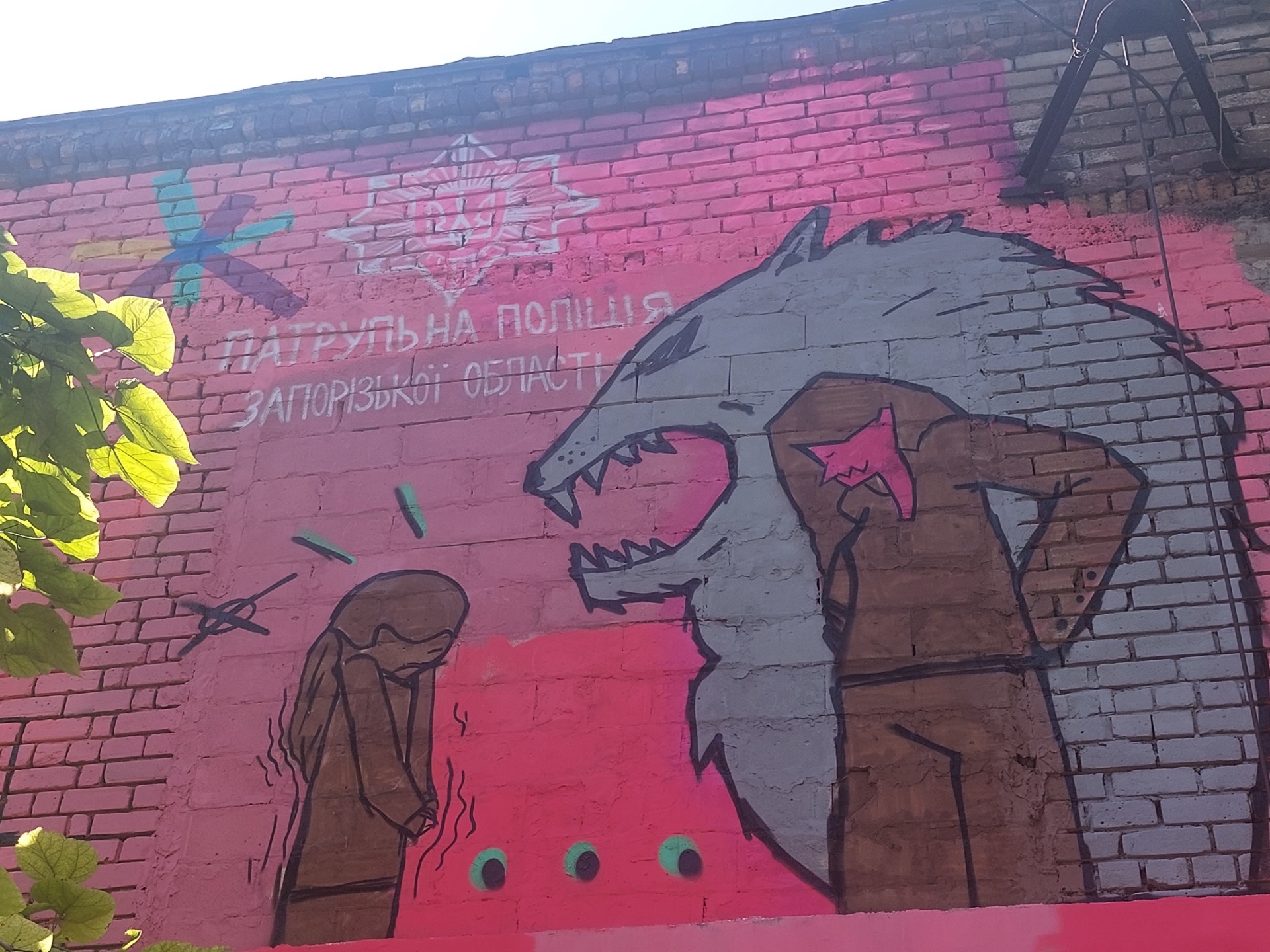Сьогодні, 25 серпня, в обласному центрі відбулася презентація стінопису, присвяченого темі протидії домашньому насиллю, який створив місцевий вуличний художник Денис Ліптон за ініціативою Головного управління Патрульної поліції в Запорізькій області.