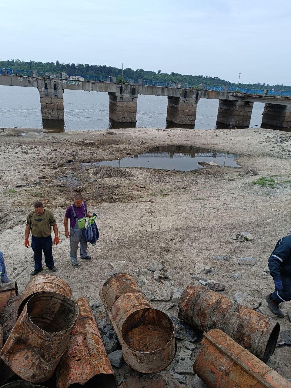 В обласному центрі з дна обмілілої річки Дніпро комунальники прибрали близько 40 іржавих бочок. Місткість пролежала на дні річки багато років та опинилася на через зниження рівня води у Дніпрі, про це повідомляє «Екополітика».