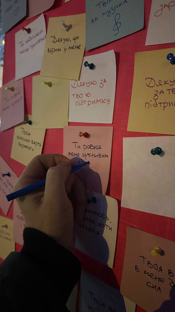«Кожен стікер — це маленьке «дякую»», — зазначають організатори. Відвідувачі можуть не лише прочитати послання, але й забрати їх собі на пам’ять, аби зберегти частинку тепла.