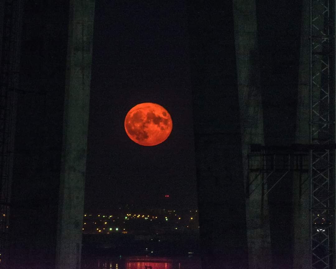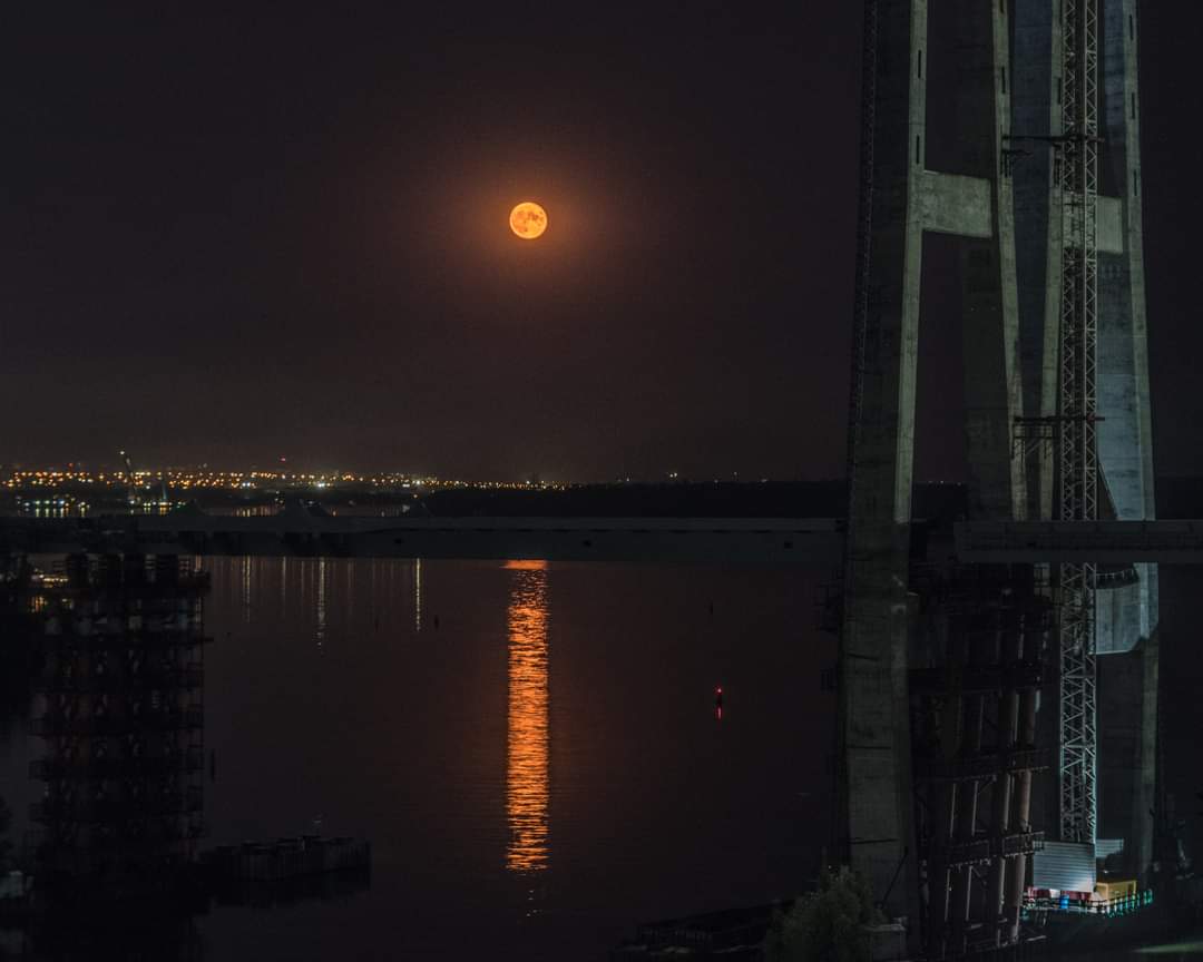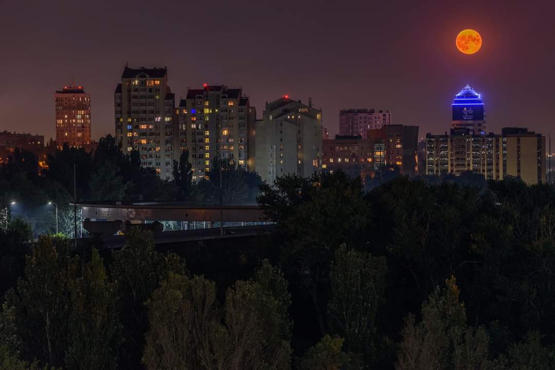Цієї ночі багато запоріжців спостерігали за красою повного місяця, який буквально палав над містом. У об’єктиви місцевим фотографам вони також не змогли не потрапити.