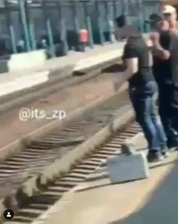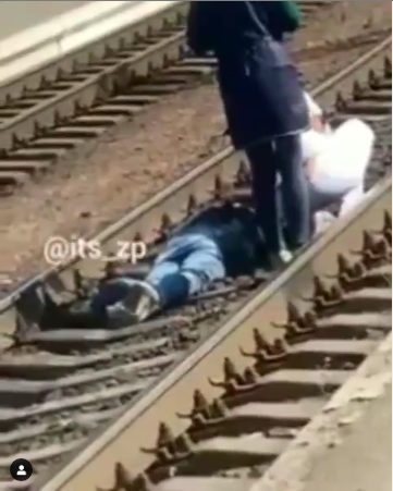 На відео видно, що невідома лежить на колії не рухаючись. Поряд з нею стоять злякані люди.