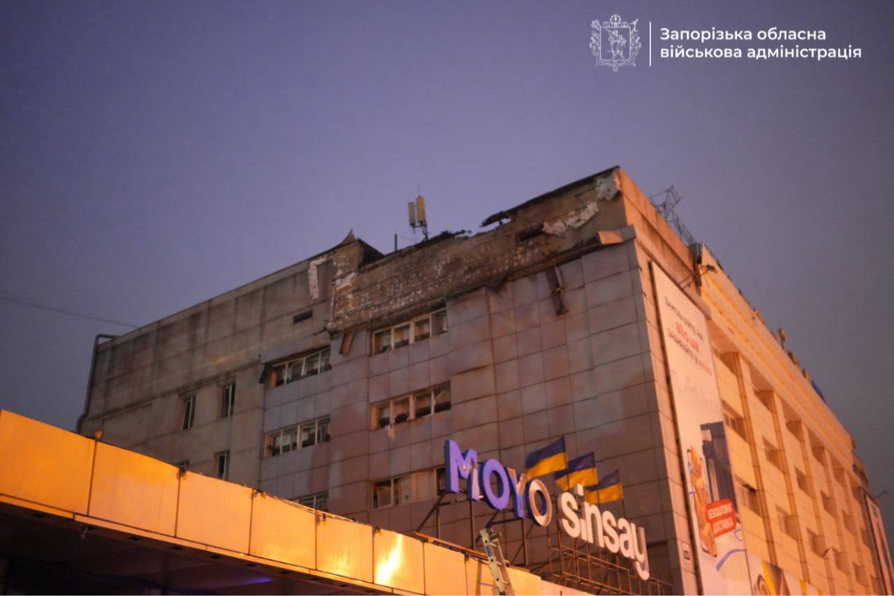 Внаслідок чергової російської атаки на Запоріжжя було пошкоджено частину будівлі торговельного центру «Епіцентр».