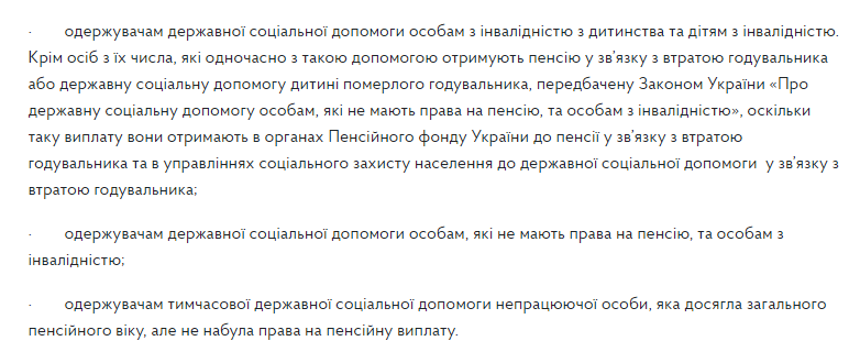 Зазначено, що одноразову грошову допомогу отримують також пенсіонери, які отримують менш як 5 тисяч гривень.