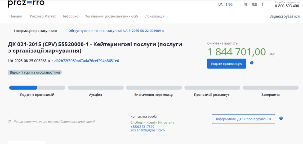 Згідно з умовами закупівлі, підрядник має забезпечити понад 16 тисяч порцій сніданків і обідів для учнів різних вікових груп. Послуги будуть надаватися до 31 грудня 2025 року.