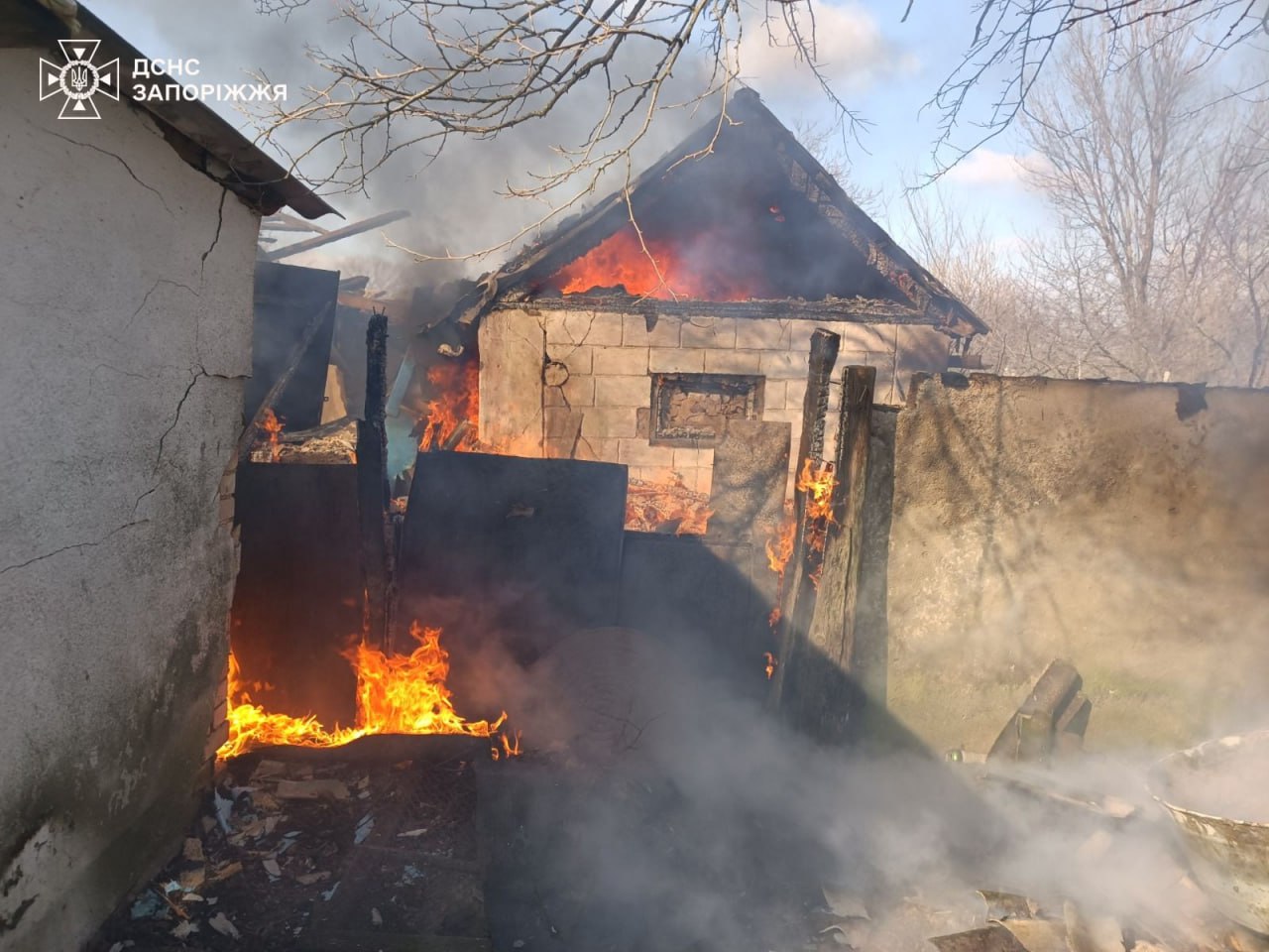Також впродовж доби внаслідок ворожих обстрілів виникло 3 пожежі у Пологівському та Василівського районах. У місті Гуляйполе рятувальники ліквідували загоряння двох господарчих споруд та даху житлового будинку. У селищі Степногірськ горіла господарча споруда.