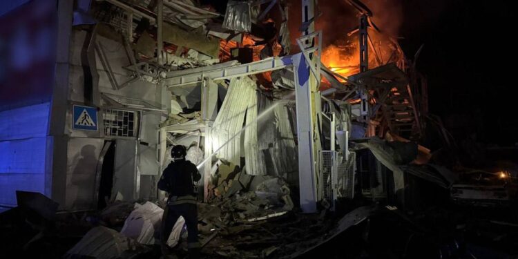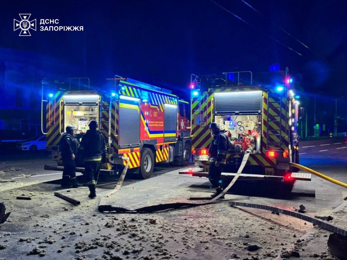 Внаслідок атаки сталася пожежа, яку рятувальники гасили вночі.