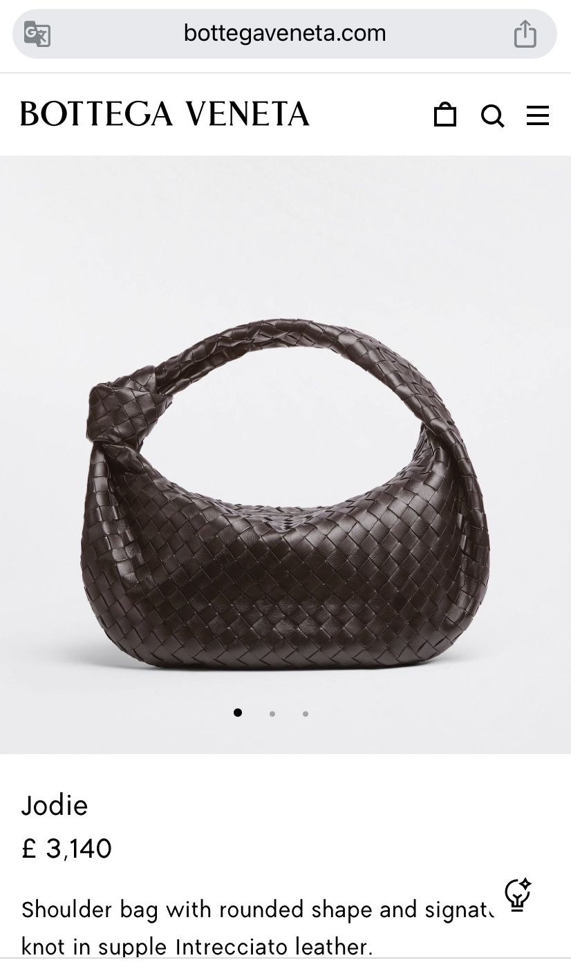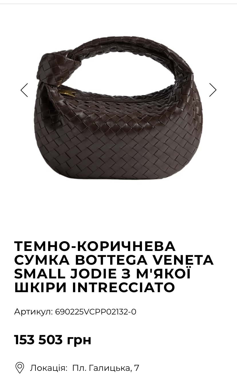 Одна з них – бежева сумка Bottega Veneta моделі Jodie. Придбати таку, але в іншому кольорі, в Україні зараз можна за 153 503 гривні, на сайті бренду трохи дешевше – за 3 140 євро (136 652 гривень за сьогоднішнім курсом).