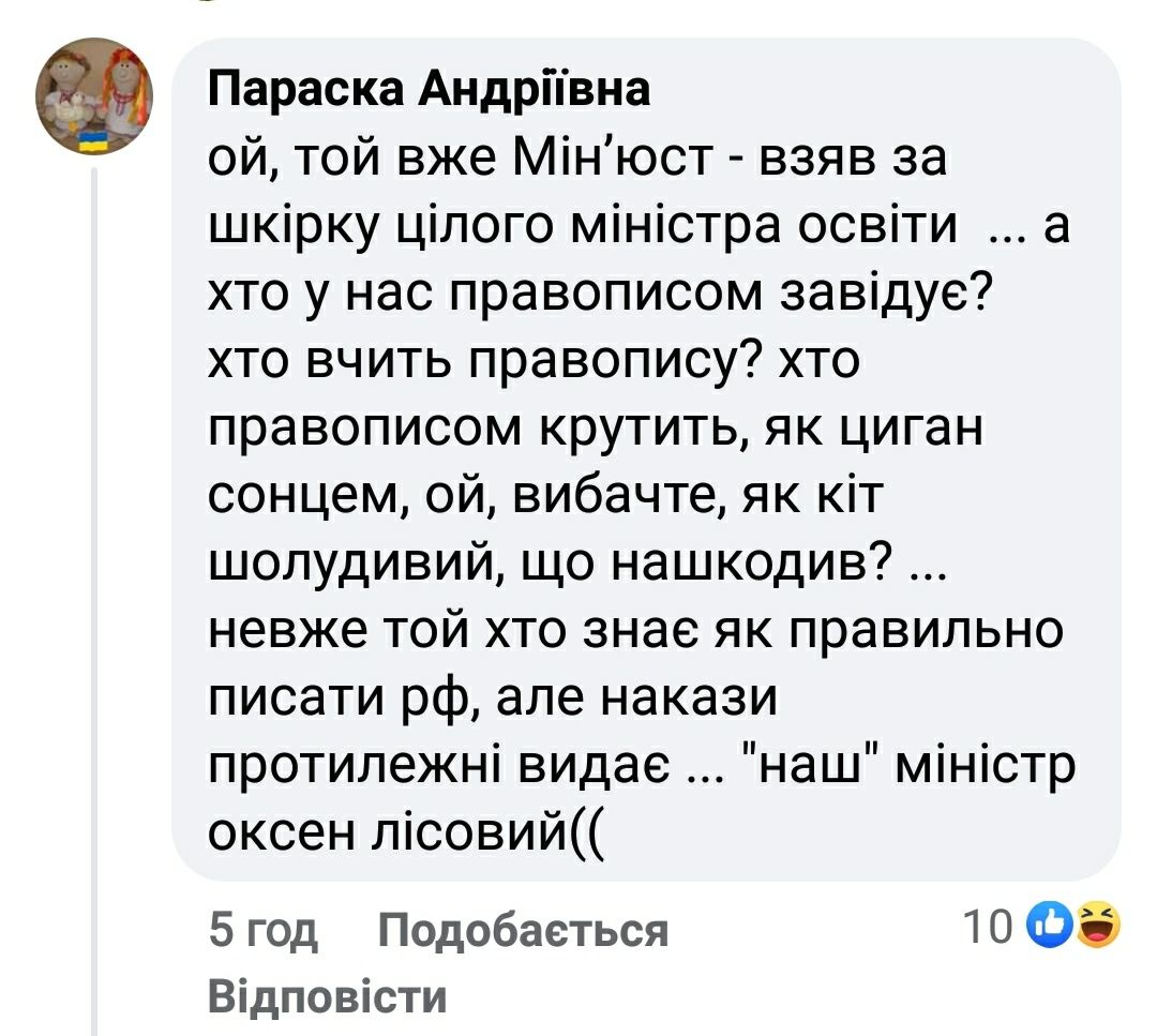 У коментарях під дописом міністра запитали, чи не проти він, щоб в Україні діти писали «Росія» з малої літери — у шкільних творах або десь на уроках географії. На що Лісовий відповів: «Тільки за». Втім все одно більшість українців не задоволені такими змінами.
