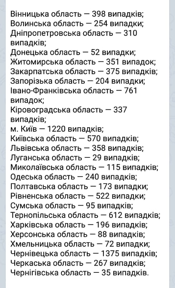Статистика поширення коронавірусу по областях: