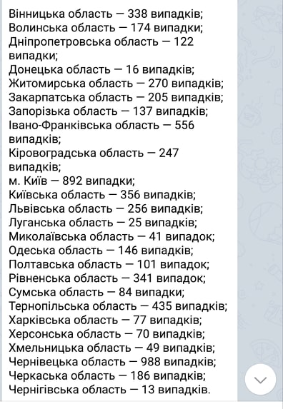 За інформацією МОЗ станом на 9:00 вівторок, 21 квітня, зафіксовано 6125 випадків захворювання на коронавірус. За добу виявлено 415. 367 пацієнтів одужали, 161 летальний випадок.