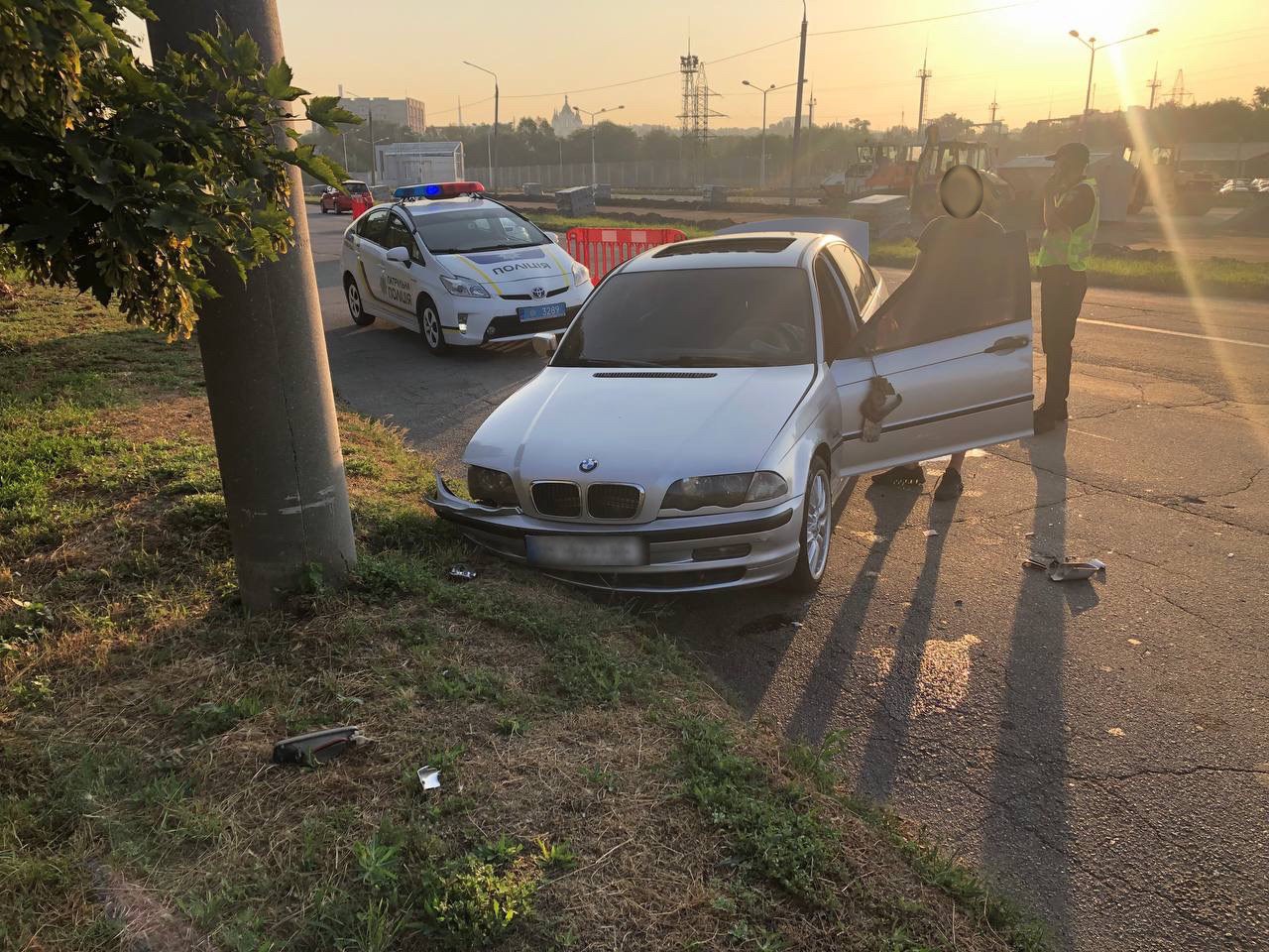 Подія трапилася сьогодні, 26 липня, вранці. Близько шостої години на Набережній в Запоріжжі напереріз патрульним виїхала автівка. Водій BMW виїхав на зустрічну смугу та намагався втекти, поки патрульні розверталися. Але далеко поїхати йому не вдалося. Чоловік в’їхав в електроопору. Від удару автівка перекинулася.