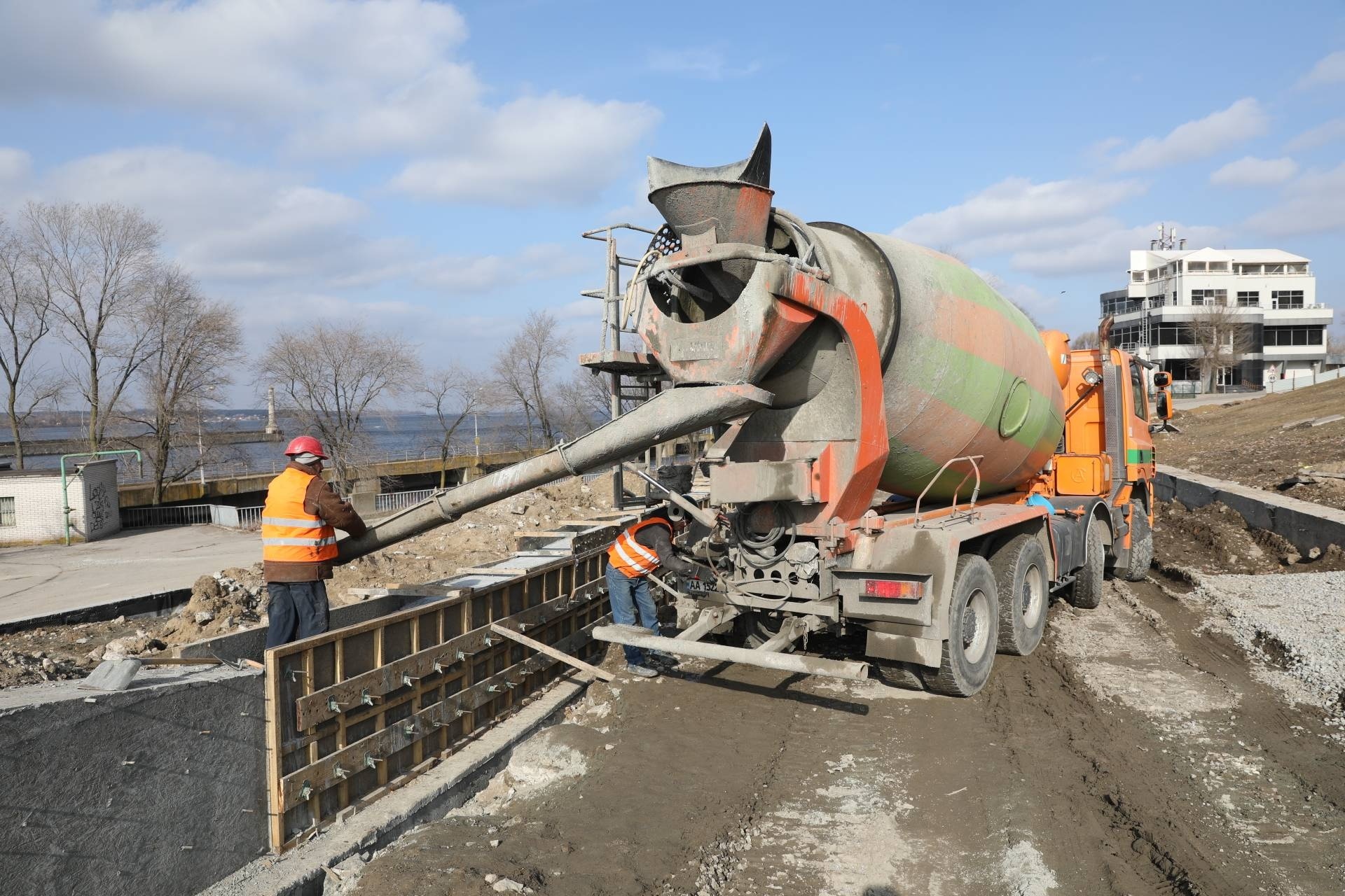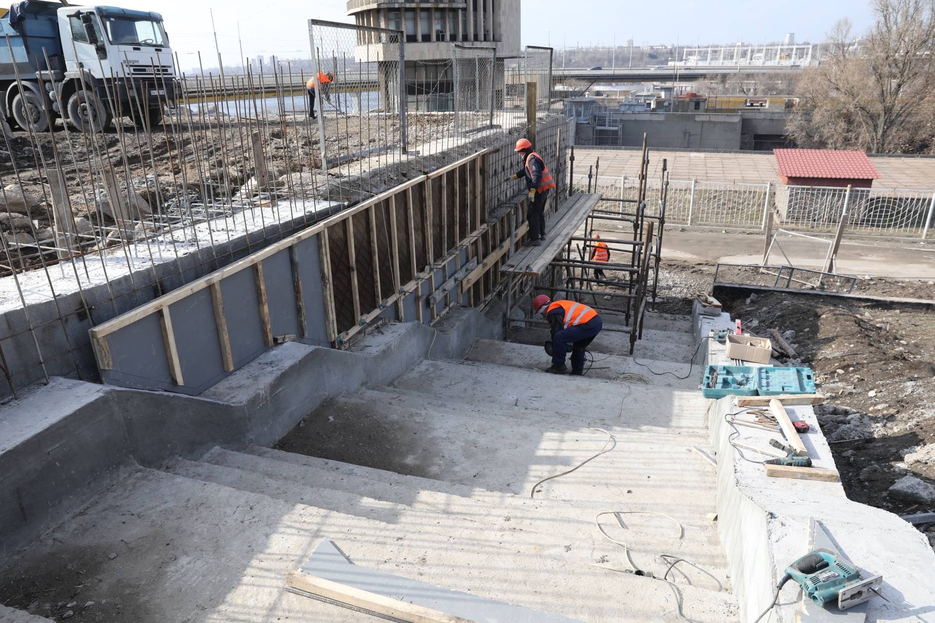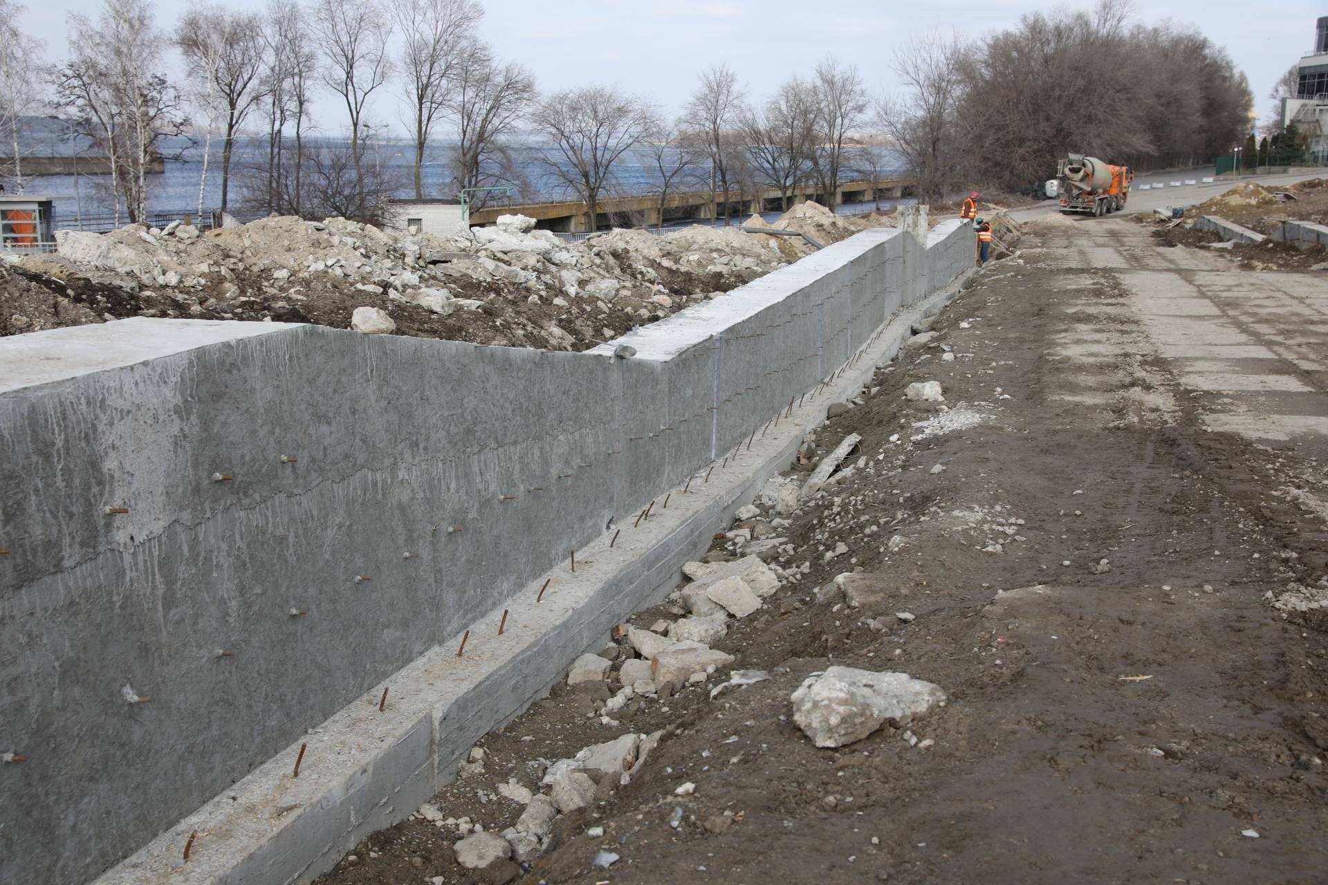 Сьогодні, 12 березня, завершили бетонування підпірної стінки, яка має стримувати ссування грунту, аби площа не руйнувалася.