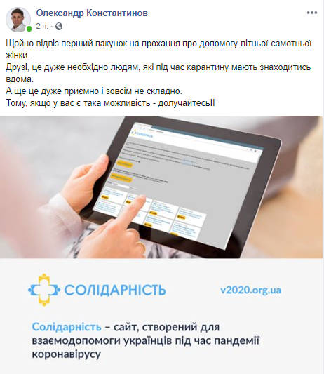 – Якщо ви хочете стати волонтером, купити для цих літніх людей продукти чи ліки та/або доставити їх — зареєструйтесь, та беріть заявки на допомогу», йдеться на сайті.
