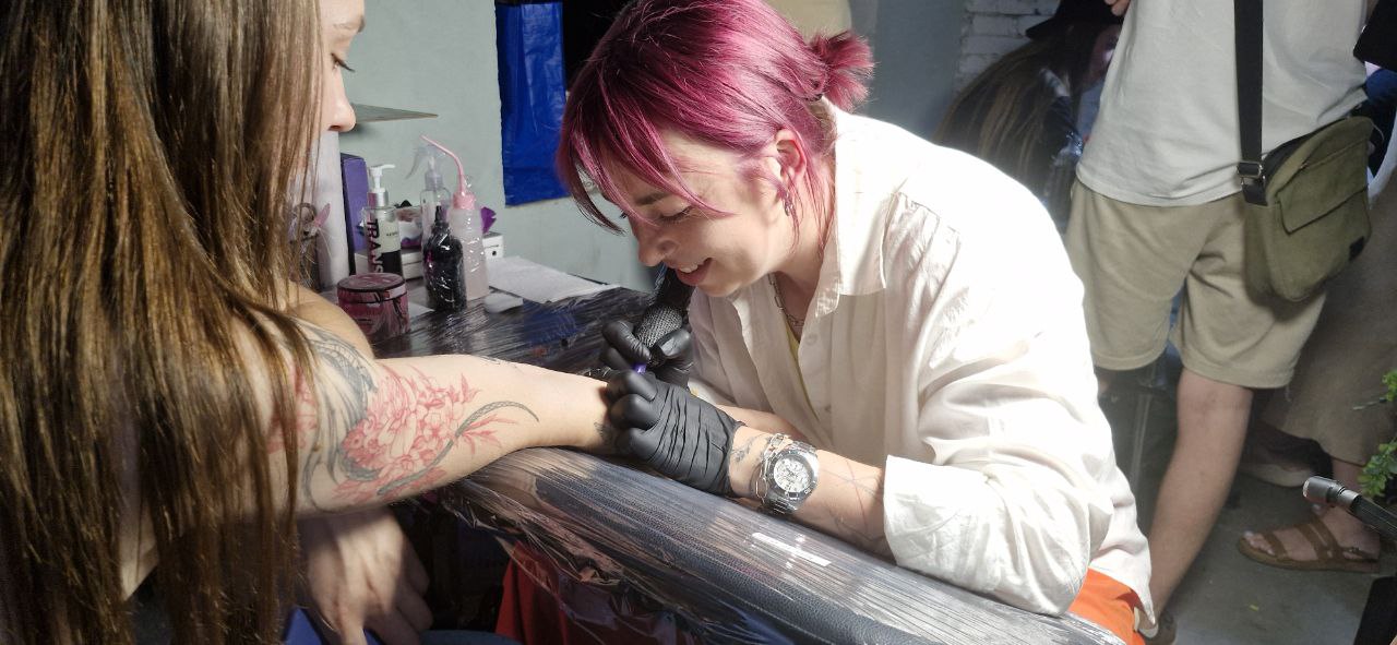 «Усі з Запоріжжя, бо в нас ідея створити тату-спільноту саме із запорізьких тату-майстрів. Щоб ми могли спілкуватися, обмінюватися енергією, ідеями, зростати разом. Захід проходить у форматі тату-івенту. Це супермінітату-фестиваль, але без номінацій. Нетиповий. Це маленька імітація того, як це відбувається в Дніпрі, як проходило в Харкові, у Львові, але там уже номінації, інші масштаби, інша кількість проведення. У нас лише початок. Я маю надію, що наступного року ми зможемо зробити повноцінний конвенційний тату-фест. До цього моменту в нас були тату-батли, де ми обмінювалися думками, підіймали тригерні теми, спілкувалися й задавали питання. І це було круто, щоб познайомитися та потусувати», – розповіла співорганізаторка Анастасія Рябик.