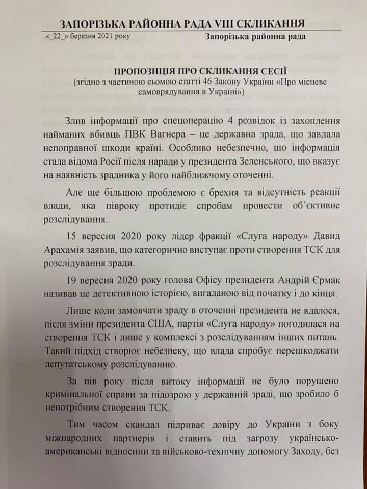 З цією метою було подано заяву про скликання позачергової сесии Запорізької районної ради. Але замість цього керівництво райради скликали для переобранения заступника голови.