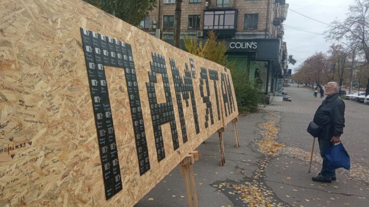 У Запоріжжі всередині жовтня в сквері Тарасова встановили інсталяцію «ПАМ’ЯТАЙ» — стенд з комп’ютерними дискетами, де вписані імена військових та цивільних, загиблих у російсько-українській війні. Проте вандали зруйнували місце пошани.