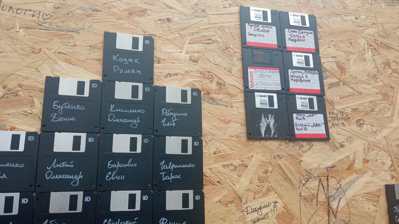 Як ми писали раніше, сьогодні стенд виглядає плачевно. Маркерів, щоб написати ім’я, немає. А прикріплені раніше дискети лежать на землі.