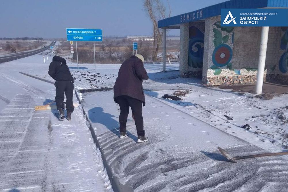 Служба автомобільних доріг виклала фотозвіт того, як працівники справлялися з негодою в Запорізькій області.