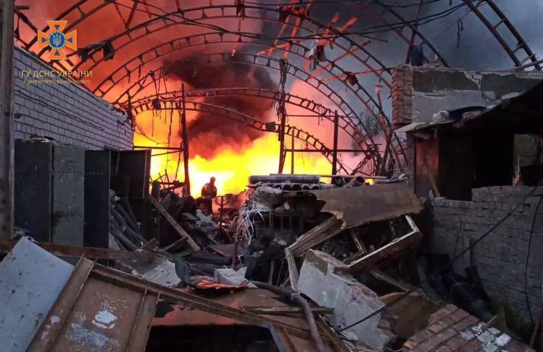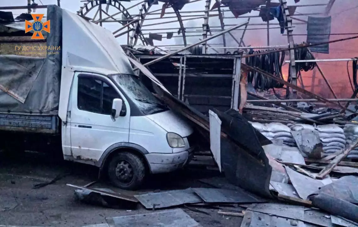 Дніпро. Внаслідок влучання, зруйновано складську будівлю на площі 600 кв.м, виникла пожежа на території підприємства площею 50 кв.м. Рятувальники ліквідували її о 05:25. В іншому районі міста внаслідок влучання у приватний житловий будинок зайнявся дах на площі 35 кв.м. Пожежу ліквідовано о 05:37. Внаслідок удару загинуло 2 особи: жінка, 1992 року народження та дитина, 2020 року народження. Також, травмовано 3 особи: чоловіки 1992 та 1968 року народження, жінку 1963 року народження, повідомляє пресслужба відомства.