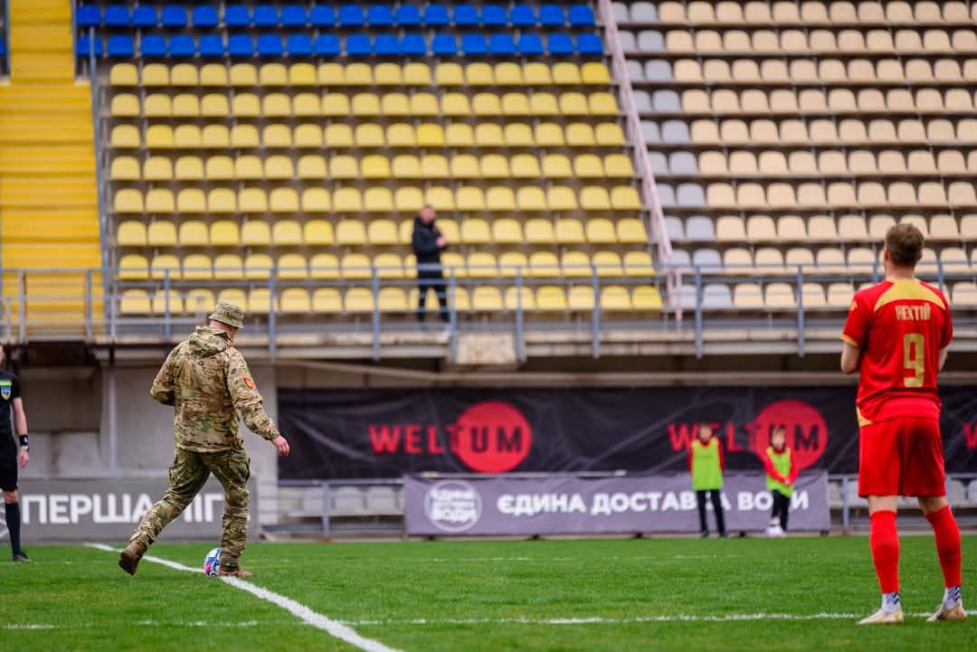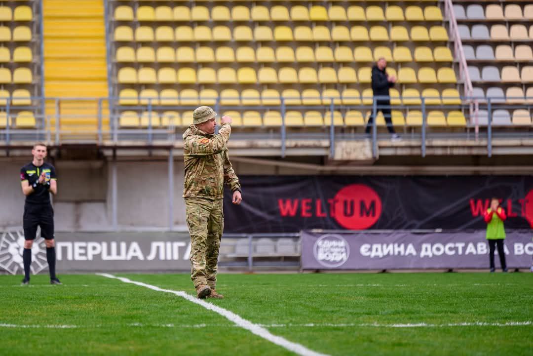 Символічний перший удар по мʼячу в матчі «Металург» – «Поділля» виконав військовий на псевдо «Жора». Це боєць 55-ї окремої артилерійської бригади «Запорізька Січ» і палкий вболівальник «Металурга» з багаторічним стажем.
