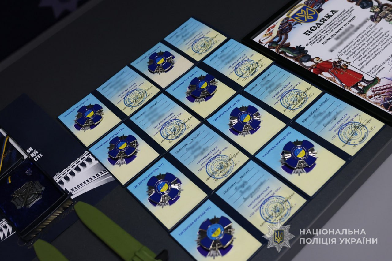 Відповідно до наказу Головнокомандувача Сил України поліцейським вручили почесні нагрудні знаки «Золотий хрест» та «Срібний хрест», а також грамоти, подяки та цінні подарунки.