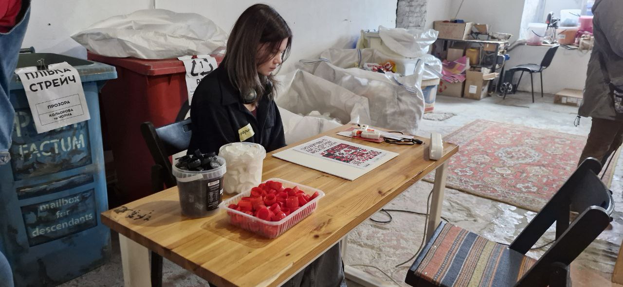 Спочатку ми просто викладали книжечки, але потім зрозуміли, що вони виглядають недостатньо ідеально, недостатньо гарно. Тож ми почали їх знімати, перемивати, приклеювати знову. Щоб провести цей воркшоп і виставку, було витрачено багато часу та зусиль, щоб усе виглядало ідеально».