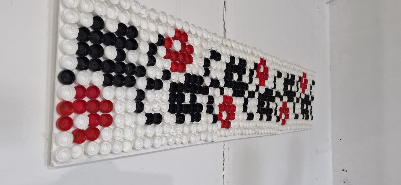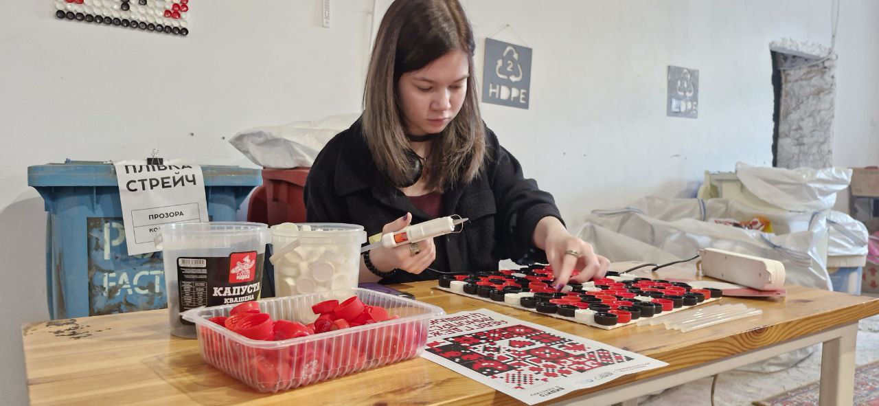 З пластикових кришечок запорізькі волонтери сворюють стародавні візерунки. Ідея належить простору Zero Waste ZP — це водночас майстерня та сортувальна станція. Його відкрили у 2021 році.