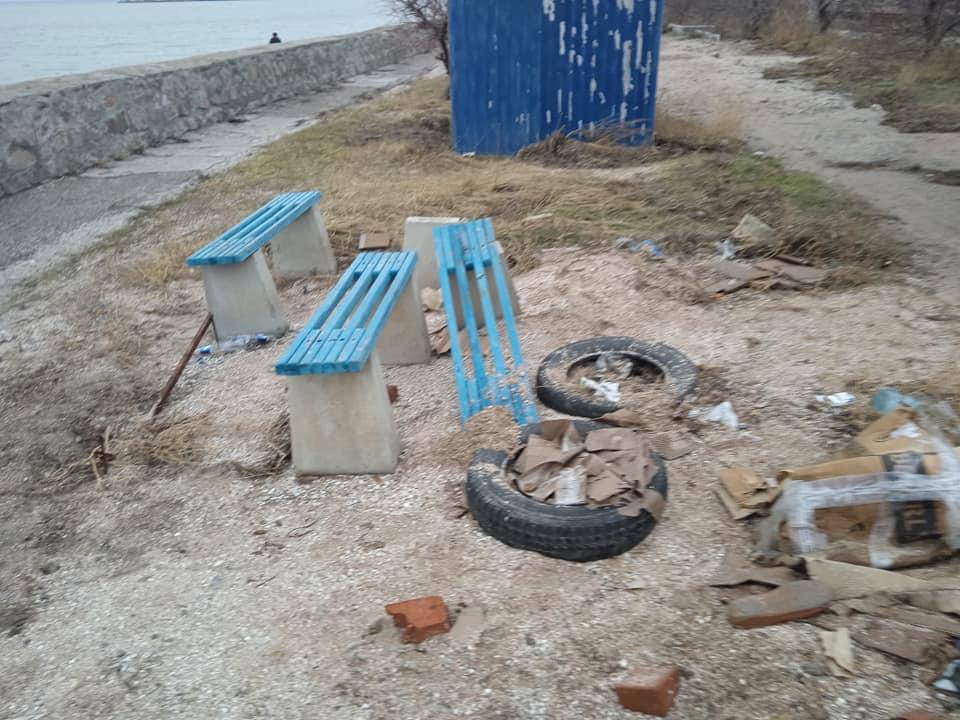 У курортному місті дуже брудно: сміття лежить на вулицях поруч із гілками від поламаних дерев, які поламалися через сильні пориви вітру. На деяких вулицях провалилася бруківка.