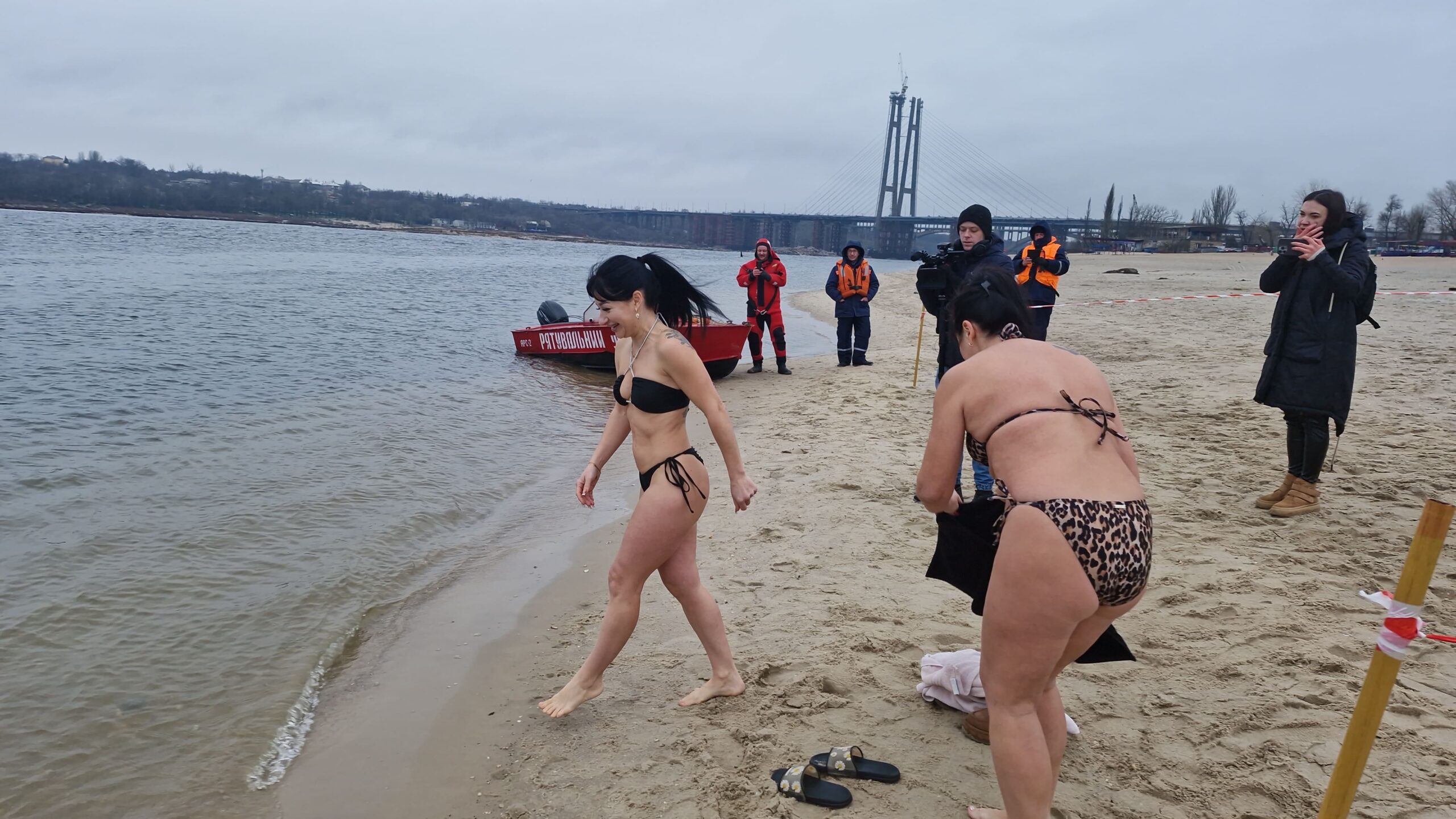 Цього року у Запоріжжі бажаючих купатися на Водохреща було не багато. Кілька людей зібралися на Центральному пляжі.
