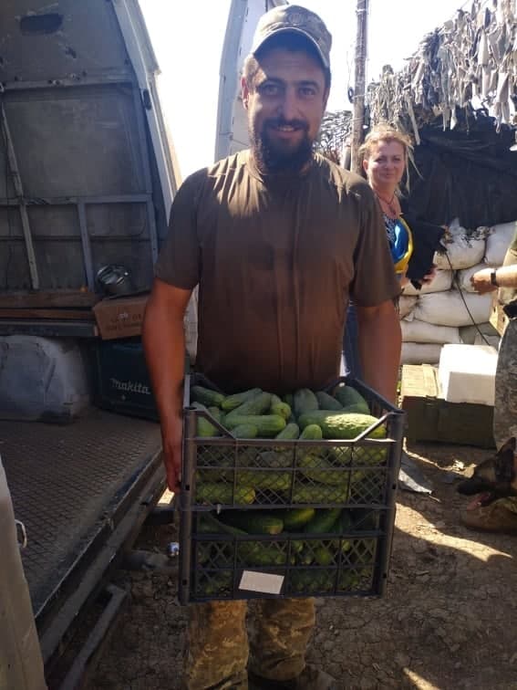 Це вже 167-а поїздка на «нуль» в рамках загальновійськової акції «Україна — своїм захисникам!». Волонтери зібрали великий «стратегічний пакунок» для бійців: черешню, огірки та томати від фермерів Запорізької області, різноманітні солодкі напої, домашні піци та… еклери! Їм бійці були раді чи не найбільше, ділиться емоціями Гончаренко.