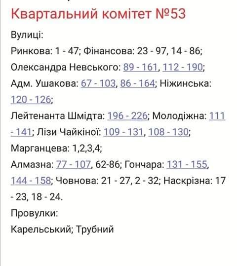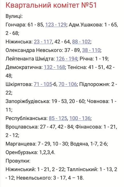 Світла не буде за наступними адресами.