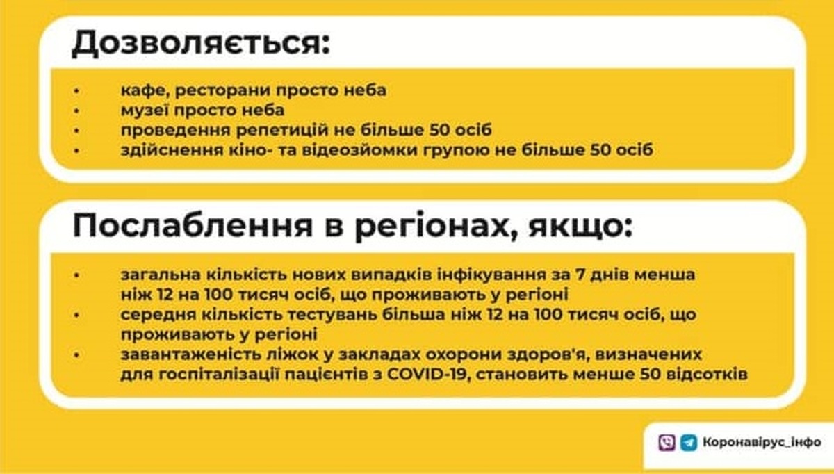 Нагадаємо, з 22 травня області перейшли до адаптивної моделі. Це рішення дасть змогу регіональним комісіям ТЕБ і НС посилювати протиепідемічні обмеження в областях, якщо виявлятимуть спалахи захворювання на коронавірус. Також на місцях зможуть послаблювати обмеження, якщо це не суперечить встановленим загальнонаціональним обмеженням.
