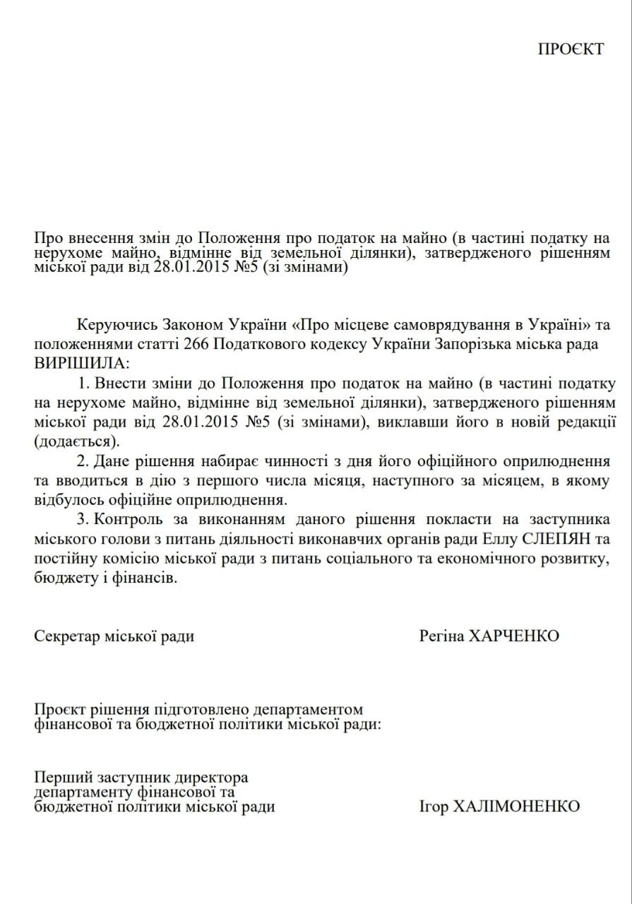 Проєкт рішення міської ради передбачає значні зміни у податковій політиці щодо нерухомості у Запоріжжі. І у разі його прийняття на сесії, податки змушені будуть платити навіть ті, хто до цього їх не платив.