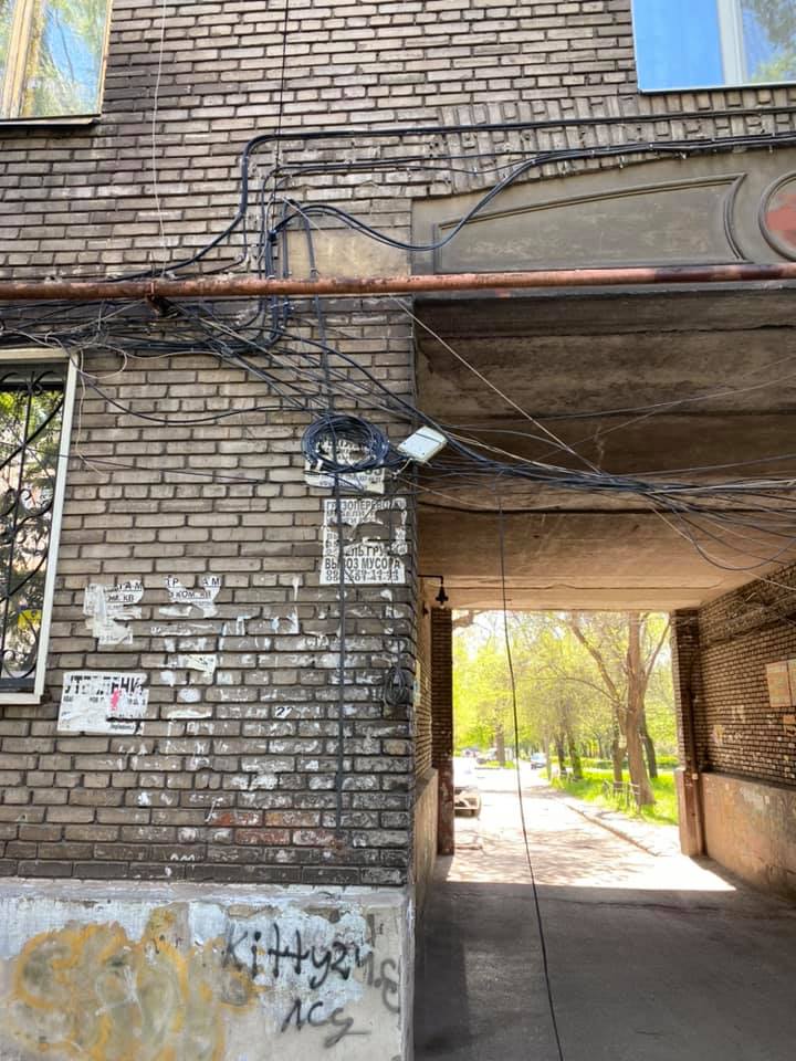 В середмісті Запоріжжя на будинках висять жмути дротів інтернет-провайдерів та телефонних операторів. мешканці скаржаться, що їх весь час намагається хтось зрізати, та від влади нікому до цього діла не має.
