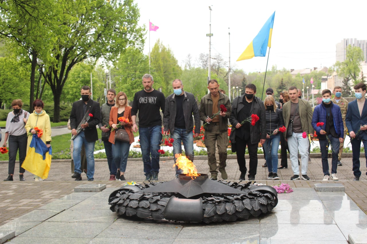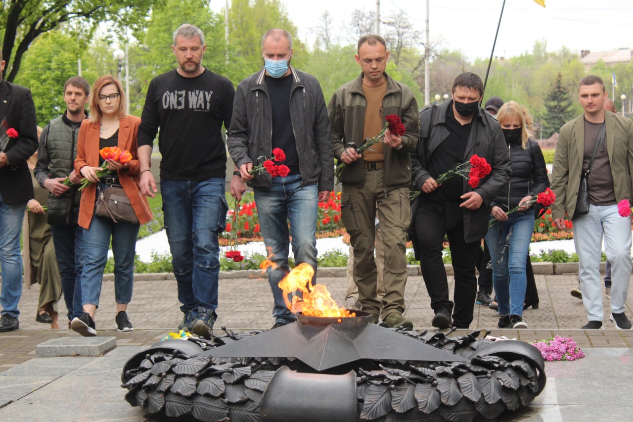 У День пам’яті та примирення депутати фракцій «Європейська Солідарність» та активісти Запорізького осередку ВГО «Солідарна Молодь» поклали квіти до вічного вогню на Алеї Бойової Слави.