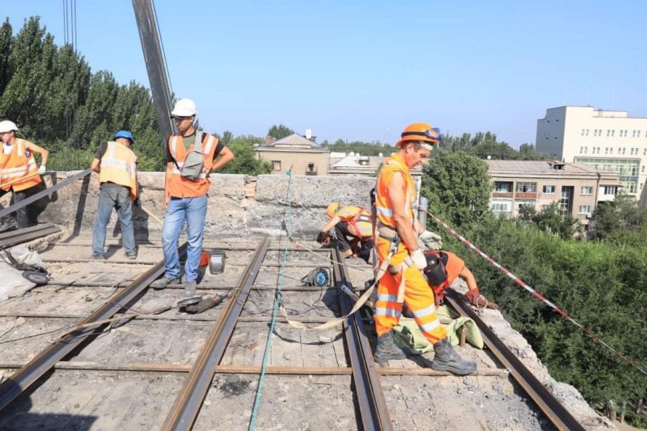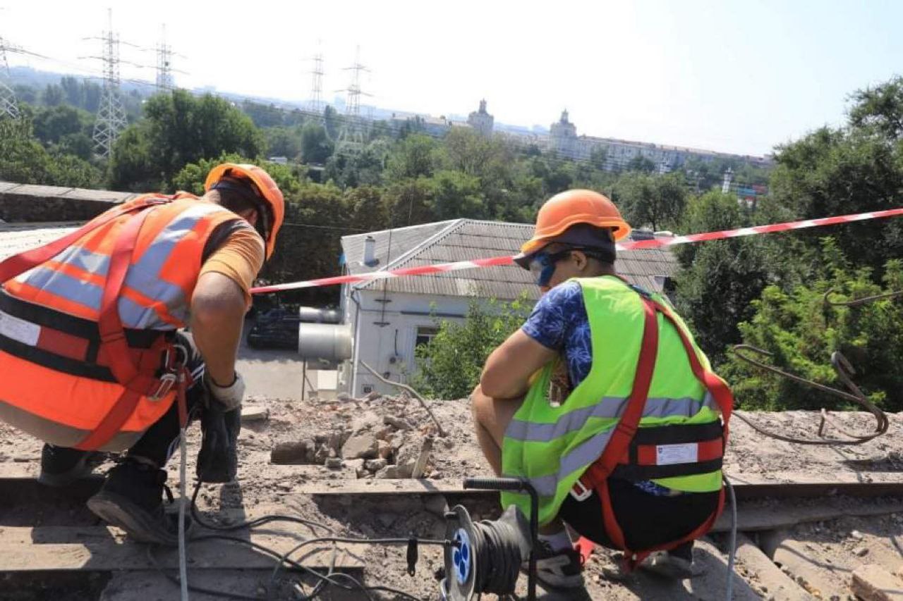 Так, на будинку по вулиці Медвєдєва, 7 тривають роботи по встановленню тимчасової покрівлі. Перекриття вже облаштували над трьома під’їздами. Планують розпочати бетонування над ще одним. Тільки після цього почнуть встановлювати постійну покрівлю. Газ, світло та водопостачання частково відновили.