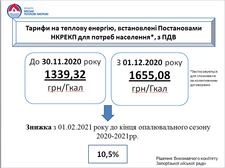 9 лютого 2021 був прийнятий «Меморандум про взаєморозуміння щодо врегулювання проблемних питань у сфері централізованого постачання теплової енергії та постачання гарячої води». Відповідно до цього меморандуму для останньої категорії населення тариф знизили на 10,5%. За ствердженням Концерну МТМ, саме це рішення планують розглянути на найближчій сесії.