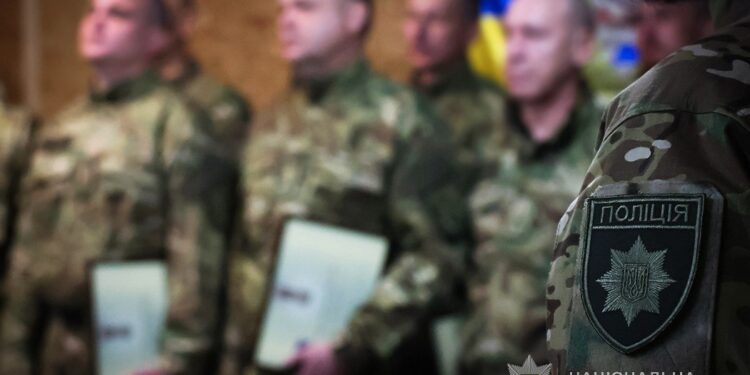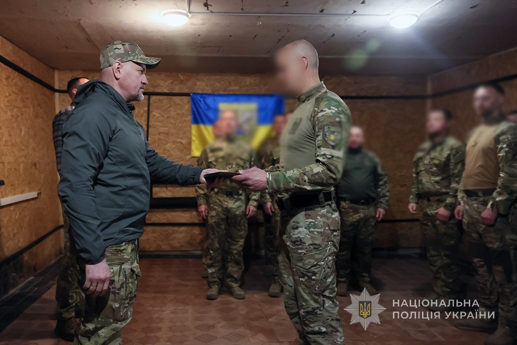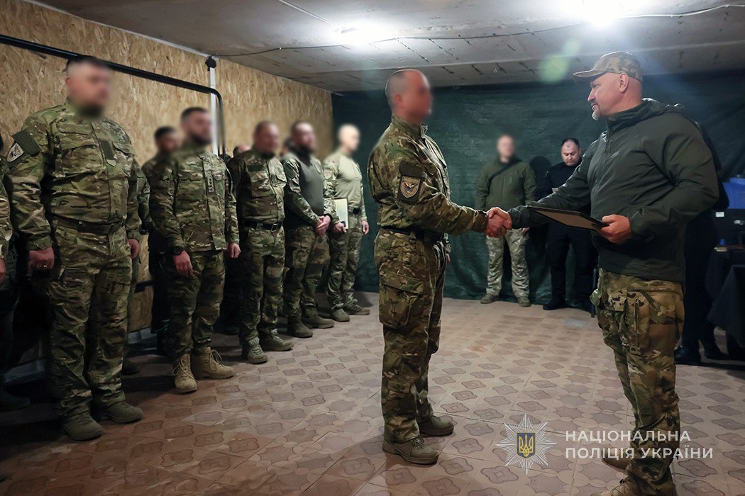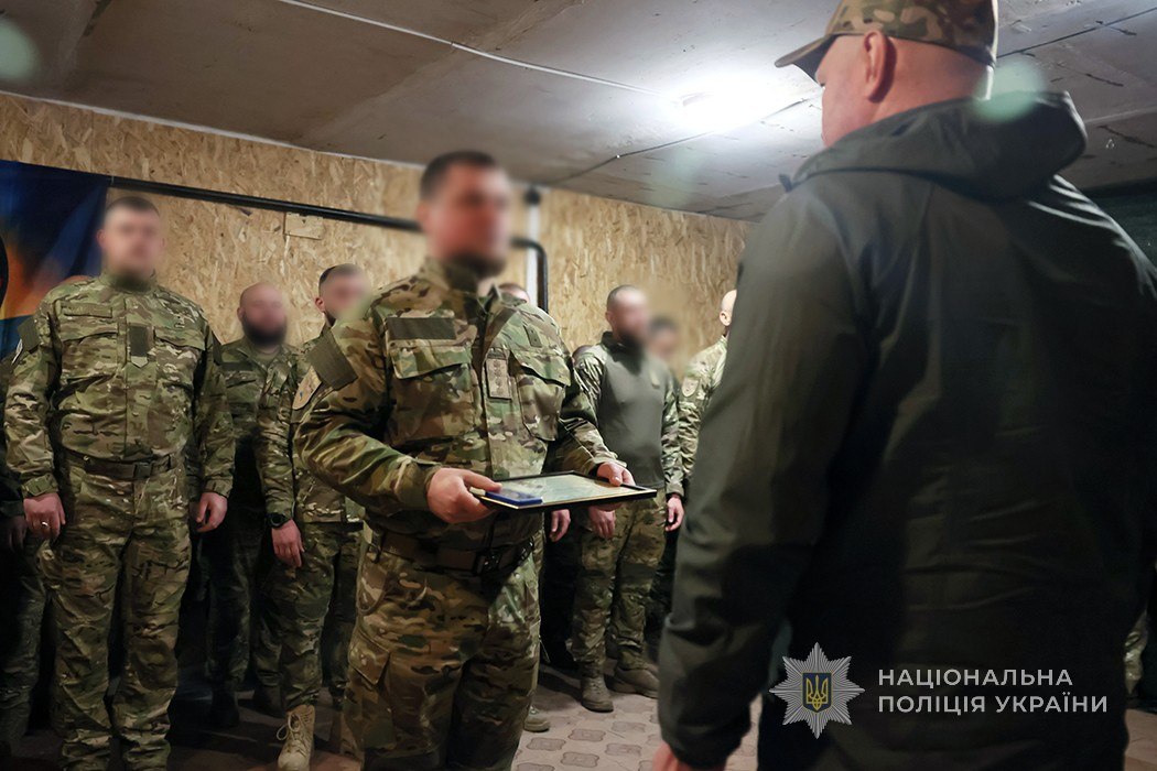 За бойові заслуги двадцятьом поліцейським підрозділу начальник ГУНП в Запорізькій області Артем Кисько вручив державні нагороди — відзнаки Президента України «За оборону України».