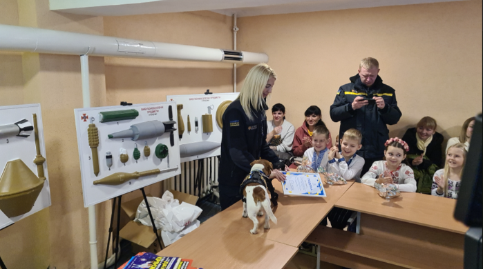 А незадовго до різдвяних свят рятувальники влаштували сюрприз для дітей — запросили кінологиню разом з псом Патроном. Малеча була просто у захваті.