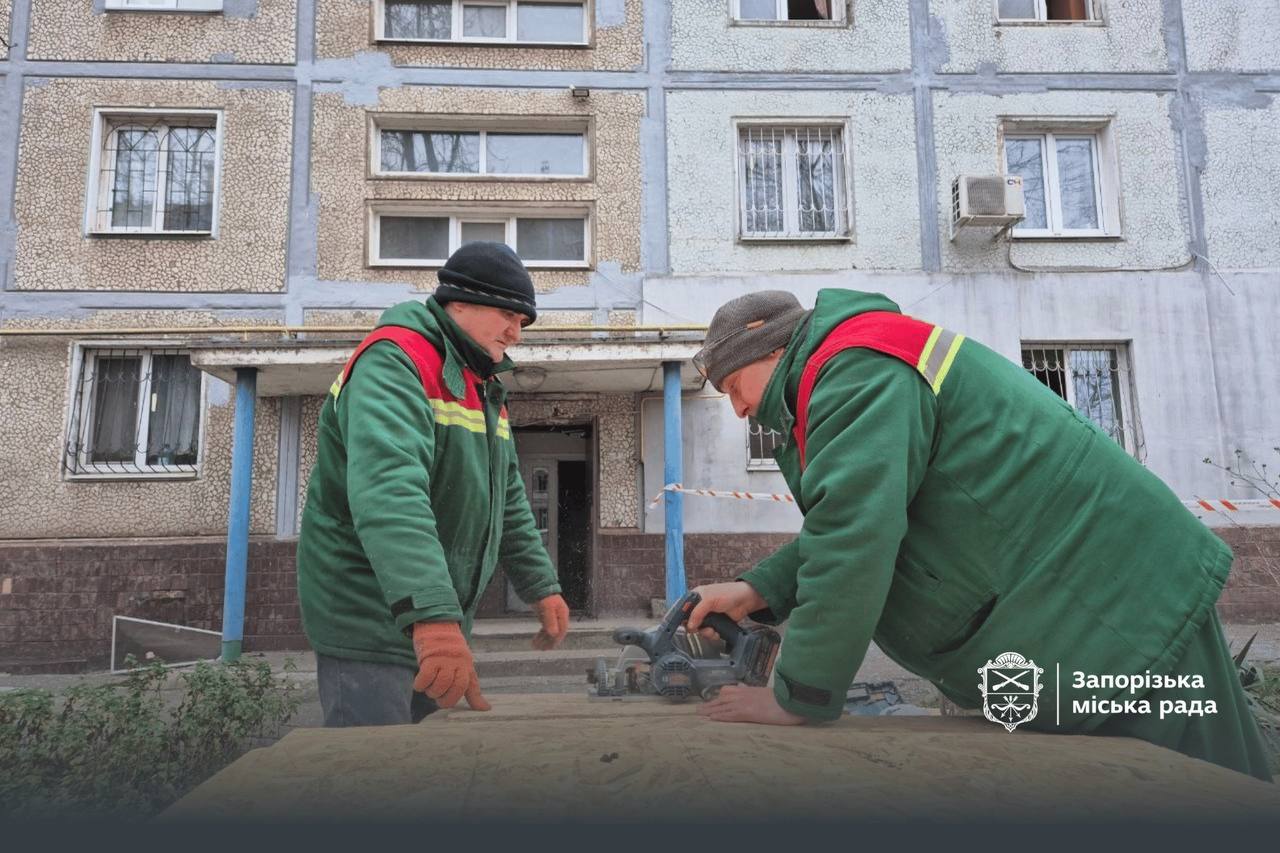 У Запоріжжі після атаки вікна вже закриті у 4 багатоповерхових та 22 приватних будинках, а також у низці нежитлових приміщень.