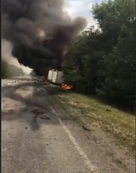 Вчера, 22 мая, под Васильевкой случилось ДТП. Грузовик марки «Мерседес» столкнулся с иномаркой «Мазда», которая выехала на встречную полосу. После столкновения автомобили загорелись.
