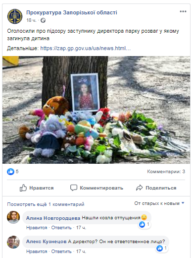 Адвокат батьків дівчинки, яка загинула в запорізькому парку, звернувся до громадян
