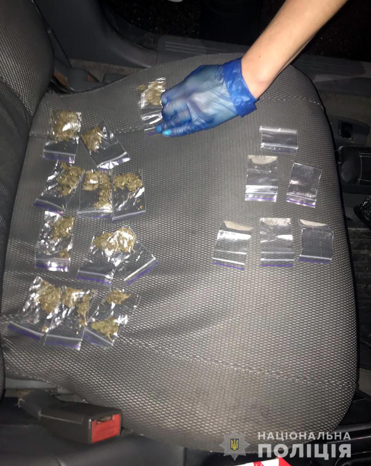Під час огляду салону автомобіля порушника виявили та вилучили п’ять зіп-пакетів з кристалічною речовиною білого кольору вагою близько 2,5 грама (за попередніми даними «амфетамін») та 13 зіп-пакетів з речовиною рослинного походження вагою 130 грам (за попередніми даними «марихуана». Зазначають, що наркотики чоловік збирався продати. Їх відправили на експертизу.