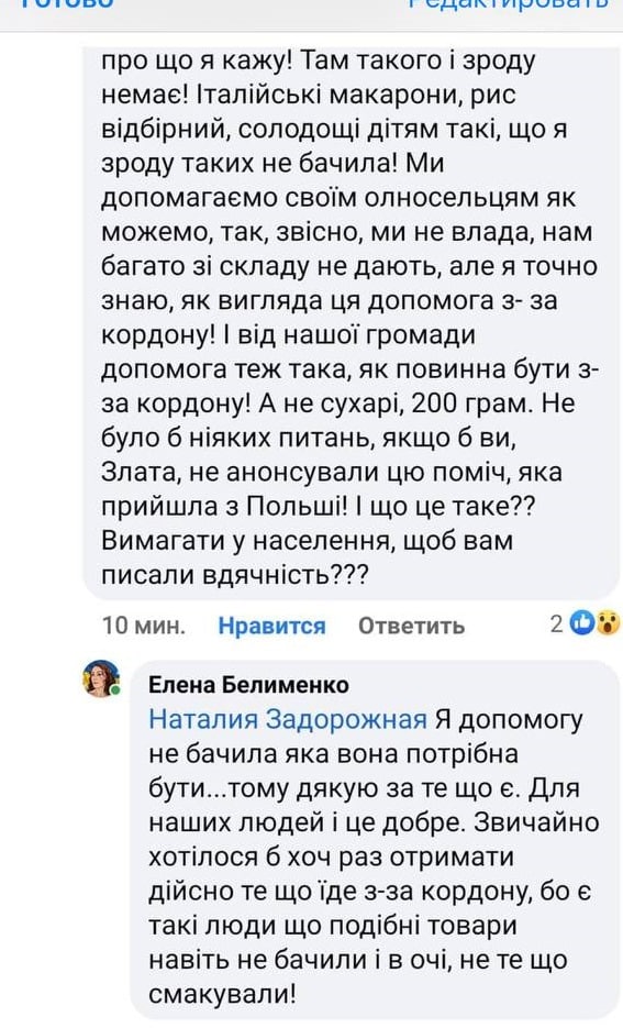 Окрім цього, громади, які отримують допомогу, заявляють, що Златі Некрасовій потрібно висловити вдячність!